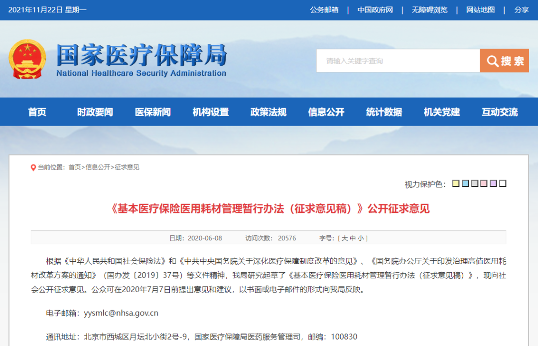 11月19日,国家医保局发布了关于《基本医疗保险医用耗材支付管理暂行办法(征求意见稿)》《医保医用耗材“医保通用名”命名规范(征求意见稿)》公开征求意见的公告。 01 基本医疗保险医用耗材支付管理暂行办法 (征求意见稿) 此次发布的《基本医疗保险医用耗材支付管理暂行办法(征求意见稿)》明确临床价值高、经济性评价优良的医用耗材纳入医保支付范围。 并表示,省级医疗保障行政部门执行国家统一的医保医用耗材目录,按照医保支付标准的确定规则制定本行政区域内的支付标准。省级医疗保障行政部门负责指导、监督辖域内各统筹地区贯彻执行国家医保医用耗材目录和省级支付标准等。 早在去年6月,国家医保局发布了《基本医疗保险医用耗材管理暂行办法(征求意见稿)》公开征求意见,并且确定了《基本医保医用耗材目录》(以下简称《耗材目录》)。 此次发布的《基本医疗保险医用耗材支付管理暂行办法(征求意见稿)》明确了要对《耗材目录》进行动态调整,表示纳入《耗材目录》的医用耗材,必须具备临床必需、价格合理、安全有效等特点;并且建立了目录动态调整机制,根据医用耗材保障需求、医保基金的收支情况、承受能力、目录管理重点等因素,确定耗材目录调整的范围。 此外,在医保支付上,《基本医疗保险医用耗材支付管理暂行办法(征求意见稿)》鼓励各地将目录内医用耗材纳入按病种分值付费、按疾病诊断相关分组付费等打包支付范围。 在省级支付标准的基础上,各统筹地区可统筹考虑基金承受能力等因素合理确定支付比例。 并且,医疗保障经办机构要通过定点协议等方式保持患者负担水平总体稳定,避免过度增加患者负担。 值得注意的是,《基本医疗保险医用耗材支付管理暂行办法(征求意见稿)》也表示国家基本医用耗材支付要实行医保通用名管理。在依照国务院医疗保障行政部门医用耗材编码规则进行分类的基础上,按照以学科、用途、功能为核心,兼顾材质和特征,充分考虑不同学科分类的差异性,依据功能和效果相近、支付标准管理趋同的原则,将具有医保耗材编码的耗材进行分类合并,形成医保通用名。 02 医保医用耗材“医保通用名”命名规范 (征求意见稿) 医用耗材“医保通用名”是对学科、品类和功能相近,材质特征相似,同通用名产品临床可互相替代、临床价值趋同,医保管理趋同的医用耗材统一规范的命名。“医保通用名”用于全国医疗保障医用耗材目录准入、挂网采购、医保支付和基金监管等工作。 “医保通用名”命名依据医保医用耗材分类(三级分类+通用名+材质和特征),原则上以三级分类名称前置,根据医保管理需要选取必要的材质和特征参数后置,形成“医保通用名”。如:血管介入材料中的三级分类“冠脉药物洗脱支架”,取其必要材质特征,“医保通用名”命名为“冠脉药物支架(合金)”。 基于医保医用耗材数据库注册备案信息,以一级分类为主线,依据医用耗材的功能和临床医用特点,借鉴国家药监部门医疗器械通用名称命名规则,分类编制“医保通用名”命名规则。按照专科耗材服从通用耗材,单件名称服从通用名称、全面覆盖、避免重复的要求,做到大类内统一、大类间协调衔接。如:两个医用耗材产品“配内窥镜用气管支架”、“配导丝用气管支架”,根据产品材质特征趋同原则,“医保通用名”均为“气管支架(金属/覆膜)”。 |