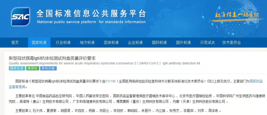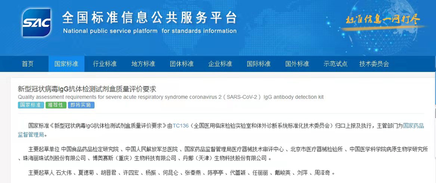 《新型冠状病毒抗体检测试剂盒质量评价要求》两项国家标准正式发布!
