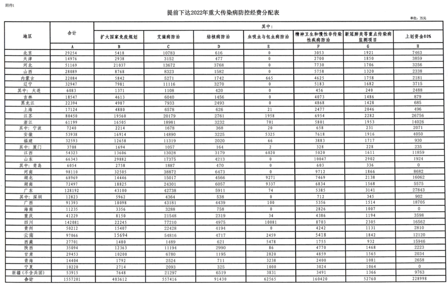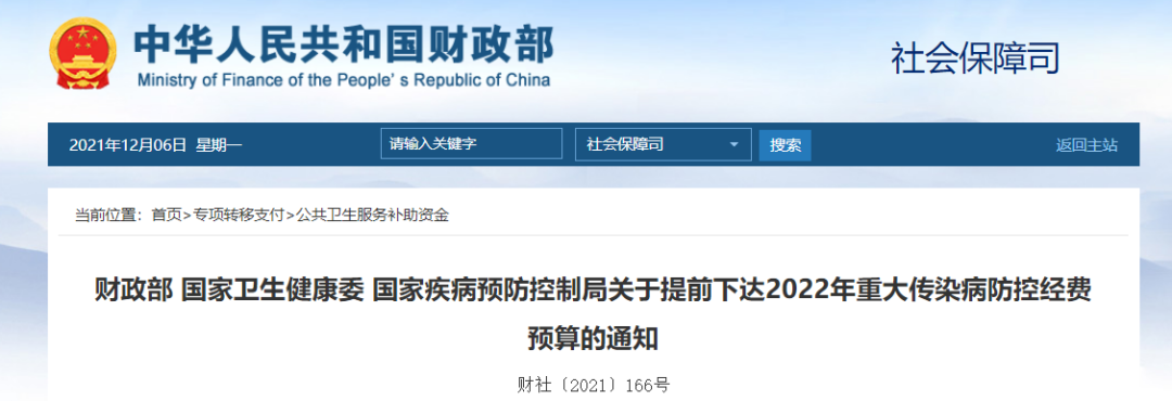 摘要: 提前下发155.7亿资金!财政支持重大传染病防控近期,国家卫健委、财政厅联合发布了《关于提前下达2022年重大传染病防控经费预算的通知》。《通知》明确,提前下达155.7亿元财政经费,用于扩大国家免疫规划、艾滋病防 ...