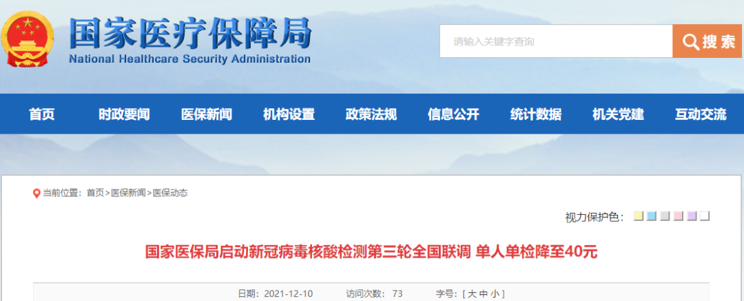新冠核酸检测收费全国联调 12月10日,据国家医保局发布消息,国家医保局已启动第三轮全国联调。要求各省在12月15日之前降低公立医院检测价格,单人单检每人份不超过40元,多人混检每人份不超过10元。 各地新冠检测最新价格 北京 12月11日起,北京市公立医疗机构新冠病毒核酸检测单样本价格由58元降低至35元/次,5样本、10样本混合检测价格统一降低至8元/人份。此次是北京市对新型冠状病毒核酸检测项目的第6次动态调整。 广东 12月13日,广东省发布《关于进一步降低新冠病毒核酸检测价格和费用的通知》,将新冠病毒核酸单检价格统一降至25元/人份,混检价格统一降至8元/人份。抗体检测单项降至15元/人份,同时检测IgG、IgM的收费为25元/人份。 上海 11月29日起,单人单检价格调整至40元/次(含试剂等耗材)。 天津 12月10日起, 公立医疗机构新冠病毒核酸检测单人单检价格调整为每人份40元,10人混检和5人混检价格统一调整为9元/人份。 浙江 11月26日起,新型冠状病毒核酸检测项目价格,调整后为40元/次新型冠状病毒核酸混合检测价格,调整后为10元/人份。 江苏 11月25日起,单人单检价格调整至40元/次(含试剂等耗材),混合检测价格调整至10元/人份(含试剂等耗材)。 安徽 12月1日起,新冠病毒核酸检测项目单人单样检测价格由60元/人次调整为不超过40元/人次,5:1混样检测和10:1混样检测价格由22元/人次和15元/人次均调整为不超过10元/人份。 福建 11月24日起,新冠病毒核酸1人1检测项目价格由原每人次53元调低至39元,5混1检测、10合1混采检测项目价格统一调低至8元/人份。 江西 12月1日起,新型冠状病毒核酸检测项目单人单次检测价格统一下调为30元,检测价格和检测试剂价格的总和不得超过40元/人次;混合检测价格统一下调为10元/人份。 广西 12月5日起,新冠病毒核酸单人检测整体价格从每人次60元降至40元;核酸混合检测价格从每人次15元降至10元。 湖南 11月22日,公立医疗机构“新冠肺炎核酸检测”项目单人单检价格统一降至每人次25元,检测以及试剂费用总和不得超过每人次40元;混检价格统一降至每人次10元。 河南 12月10日起,新冠病毒核酸检测(标本单采)项目价格降低至30元/人次(不含核酸检测试剂费用);新冠病毒核酸检测(标本混采)项目价格降低至10元/人份。 河北 11月25日起,将新型冠状病毒核酸检测项目的最高限价由每人份60元调整为40元;5人混检和10人混检,最高限价统一调整为8元/人份。 四川 12月6日,四川省将省管公立医疗机构“病原体核糖核酸扩增定性检测-新型冠状病毒”项目价格下调为40元/人次、“病原体核糖核酸扩增定性检测-新型冠状病毒(5混1)”项目价格和“病原体核糖核酸扩增定性检测-新型冠状病毒(10混1)”项目价格统一下调为10元/人份。 山东 12月15日起,山东县级以上疾病预防控制机构新冠病毒核酸检测价格将进一步降低,单人单检收费标准下调为35元/人次,10人混检和5人混检收费标准统一下调为10元/人份。 山西 12月1日起,山西省新冠病毒核酸单人单检价格由原每人次50元降低至每人次30元,加上检测试剂总费用不超过40元,比原单人单检总价降低20元。5混1检测、10合1混采检测项目价格统一调低至10元/人份。 江西 12月1日起,新型冠状病毒核酸检测项目单人单次检测价格统一下调为30元/人次,检测价格和检测试剂价格的总和不得超过40元/人次;混合检测价格统一下调为10元/人份。 福建 11月24日起,新冠病毒核酸1人1检测项目价格调整为每人次39元,5混1检测、10合1混采检测项目价格统一调整为8元/人份。 辽宁 11月22日起,公立医疗机构新型冠状病毒核酸检测最高限价调整为每人份40元,5合1混合检测和10合1混合检测最高限价统一调整为10元/人份。 内蒙古 12月15日起,新冠病毒核酸检测价格下调至35元。 黑龙江 11月16日起,单人单检价格调整至40元,5混1检测、10合1混采检测项目价格统一调低至8元/人份。 云南 12月5日起,"新型冠状病毒核酸检测(单人单检)",检测费用最高限价标准调整为不超过30元/次,总费用含检测费用和单独收费的核酸检测试剂,不超过40元/次;"新型冠状病毒核酸检测(混检)" ,不再区分混合样本数量,最高限价标准调整为不超过10元/人份。 青海 11月20日起,病原体核糖核酸扩增定性检测指导价格调整为40元/项,采用10人混检和5人混检方式的统一调整为10元/人份。 甘肃 11月17日起,单人单样检测最高限价调整为40元/人次,5:1混样检测和10:1混样检测最高限价统一调整为10元/人份。第三方疾控检测机构提供核酸检测服务,定价应当遵循“公平、合法和诚实信用”的原则,体现保本微利。 陕西 11月29日起,新型冠状病毒核酸检测项目价格由每人次最高限价60元调整为38元(含检测试剂),5人混合检测和10人混合检测价格统一调整为10元/人份,下浮不限。 全省疾病预防控制机构开展新型冠状病毒核酸检测收费标准降至每人次40元,混合检测收费标准为10元/人份。 |