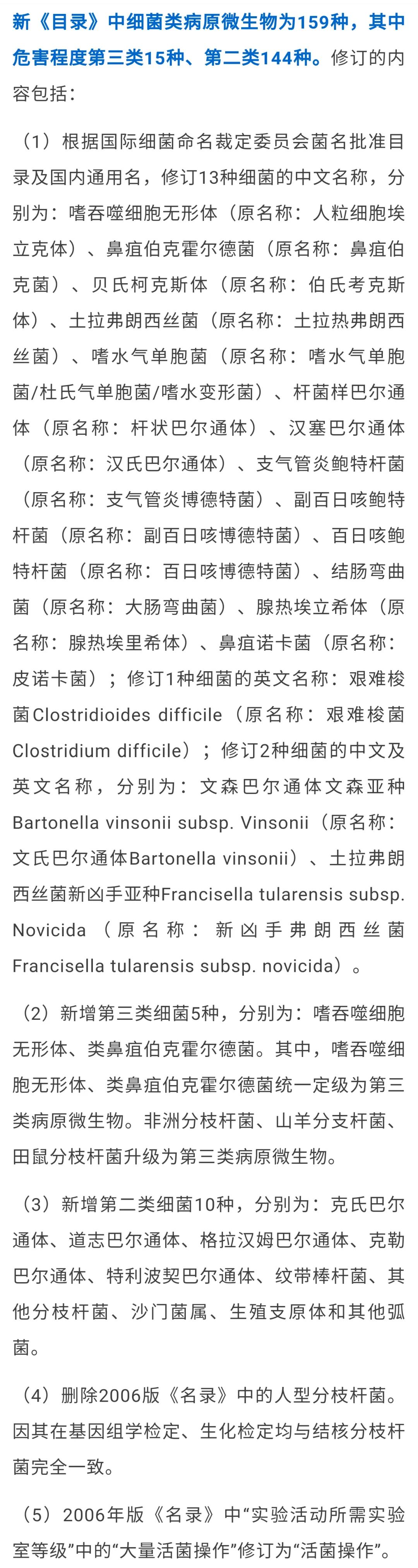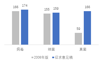 图:《目录》修订前后各病原体数量及分类对比