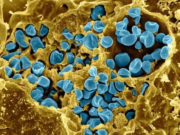 图:土拉弗朗西丝菌(蓝色)感染巨噬细胞
