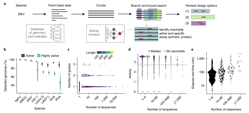研究团队提供了三个方面的进展:(1)预测诊断系统的酶活性;(2) 将病毒变异整合到诊断系统的设计中;(3)快速设计大规模诊断。