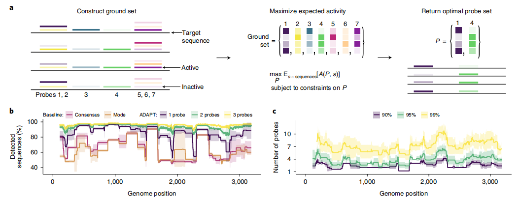 为了适应不断增长的病毒基因组数据,团队构建了ADAPT。ADAPT使用基于模型的优化方法调整设计分析选项,同时与病毒基因组数据库连接,以纳入最新可用数据。