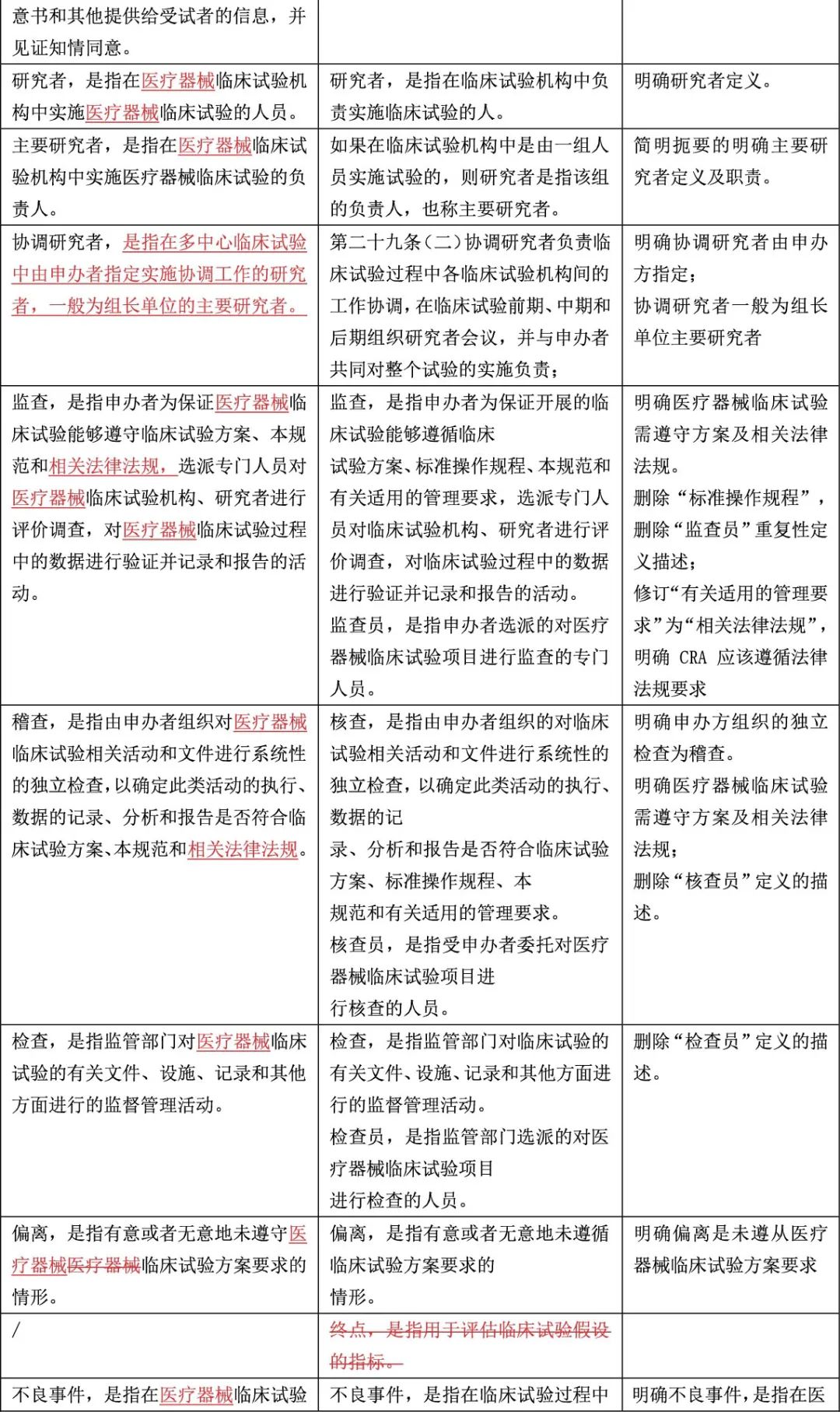 《医疗器械临床试验质量管理规范》新旧法规逐条对比与差异提示