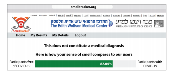 2019冠状病毒疾病已经严重破坏了世界秩序。有效应对大流行的一个必要工具是大规模、快速和廉价的筛查方法。由于国家医疗系统已经超负荷运转,理想的筛查工具应该是不需要运输、传播和处理体检的工具。一个备受关注的替代方案是,通过电话线记录的咳嗽声或嘶哑声音(AI咳嗽)进行人工智能诊断的可能性。第二种选择是在线主观自我报告症状检查,这确实产生了一些显著的结果。虽然这两种方法都满足了广泛的容易管理的筛查方案的需要,但它们都在两个关键点上失败:第一个是无法区分患病的个体和感染了新冠的患者。如果一个人咳嗽,发烧,头痛,目前的AI咳嗽和症状检查者最有可能估计他们有COVID-19,即使他们没有。第二个是COVID-19的无症状感染者。这些人占所有感染者的约30%,不会被当前的AI咳嗽和症状检查发现。矛盾的是,从流行病学的角度来看,这些人可能是最令人担忧的,因为他们可能会无意中传播疾病。 除了主观症状报告之外,另一种方法是基于客观表现的测试,嗅觉在这方面提供了一个特别有吸引力的目标。有两个原因:第一,嗅觉丧失和/或改变已被广泛认为是COVID-19的高度流行的早期症状。其次,大多数人都有现成的家用气味剂可供检测。事实上,一个由临床医生和基础科学家组成的大型联盟称为GCCR已经着手研究2019冠状病毒疾病的嗅觉,并有说服力地建立嗅觉作为标记。此外,在主观上注意到嗅觉丧失的情况下,这本身就是新冠病毒的有力标志。也就是说,嗅觉作为主观无症状个体(即从流行病学角度来看最令人担忧的群体)的标记物的能力尚未得到测试,这些个体没有嗅觉丧失的主观感觉。主观上无症状的个体不知道他们可能有任何嗅觉变化或损伤,所以所使用的测试需要对可能是潜意识的知觉变化特别敏感。最近开发的嗅觉感知指纹(OPF)正是这样一种仪器。因为它本身不是一个性能指标(例如,检测/辨别/识别的分数),而是一个感知量化物,它有效地利用了感知中微小的潜意识变化。 一组来自全世界各地的研究团队在杂志COMMUNICATIONS MEDICINE上发表了一篇题为“An olfactory self-test effectively screens for COVID-19”的文章。研究团队的假设是,OPF可以允许准确分类COVID-19阳性但没有症状的人,或COVID-19阴性但有(其他)疾病的症状。为了验证这些假设,研究团队建立了一个在线工具来报告嗅觉感知。研究团队报告的结果来自13484个参与者(462 COVID-19阳性),来自134个国家提供了178820个家庭60种不同气味的感知评级。研究团队观察到嗅觉评级表明COVID-19在一个国家的传播情况,与国家感染率随着时间的推移显著相关。而且观察到个体水平上的指示力(79%的敏感性和87%的特异性)。最关键的是,与研究团队的假设一致,这种嗅觉筛查在COVID-19无症状参与者,和在有症状但没有COVID-19的参与者中仍然有效。 图片来源:Communications medicine 主要内容 嗅觉感知表明2019冠状病毒疾病在人群中的传播水平 在2020年3月25日至2020年9月23日期间,从居住在134个国家的12020个人(7189名女性,平均年龄=44.32±14.28,4831名男性,平均年龄=45.23±15.29)中收集了数据。其中348名参与者2019冠状病毒疾病阳性(C19+),400名受试者报告阴性结果(C19−), 其余11272名参与者的状态未知(C19-UD)。91.1%的C19+参与者和55.3%的C19-参与者以及55%的C19-UD参与者报告至少存在一种疾病症状。总共,12020名参与者提供了171500个评级,适用于60种不同的气味剂。 为了探索C19+、C19−和C19-UD之间嗅觉感知的任何显著差异, ,研究团队绘制了它们的总体气味强度和愉悦度估计。与之前的报告一致,这些总体图显示各组在强度上和愉悦度存在显著差异。 嗅觉感知表明2019冠状病毒疾病在人群中的水平 图片来源:Communications medicine 嗅觉感知在个体水平上显示COVID-19 研究团队接下来探索是否可以提供一个个人COVID-19的指示。研究团队观察到有意义的分类潜力,七种气味产生的ROC曲线下面积(AUC)大于0.8。最引人注目的是有气味的Basil罗勒,其AUC为0.91,在62%的真阳性率,保持显著低的5%的假阳性率,62%的敏感性,95%的特异性;在更保守的79%真阳性率下,保留了适度的13%假阳性率,79%的敏感性和87%的特异性。选择79%的真阳性率仍然意味着21%的假阴性率。这种平衡反映了一个政策问题,在这场大流行中,支持低假阴性率可能是首选。考虑到这一点,如果选择97%的真阳性率,会产生27%的假阳性率,97%的敏感性和73%的特异性。这反映了3%的假阴性率,在测试的最佳目标范围内。 上述结果的一个局限性是,它依赖于数据的一个有限子集,即也闻过罗勒的受试个体。为了克服这个问题,研究团队重新计算了ROC,现在比较C19+和所有其他参与者(C19-与C19-UD结合),这样允许每个气味剂的样本量更大。再次观察到有意义的ROC,四种气味产生的ROC的AUC大于0.79。最强的是孜然,其AUC为0.83,在77%的真阳性率下,保留16%的假阳性率,77%的敏感性和84%的特异性。橄榄油的AUC为0.79,如果单独使用橄榄油来鉴定COVID-19,在77%的真阳性率下,保留了28%的假阳性率,77%的敏感性和72%的特异性。 单一气味强度在个体水平上显示COVID-19 图片来源:Communications medicine 单一气味嗅觉检测VS症状检查 这些结果提高了2019冠状病毒疾病的快速检测的可能性,通过对一种气味剂的强度进行评估,例如罗勒或橄榄油。此外,研究团队观察到,如果为闻过橄榄油的5167名参与者生成ROC,但基于他们的主观报告症状(发烧、咳嗽