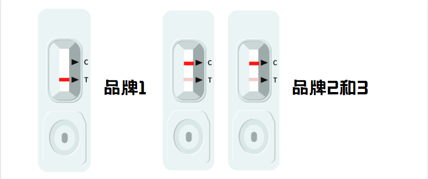 品牌3结果同品牌2一致,结果显示为弱阳性。