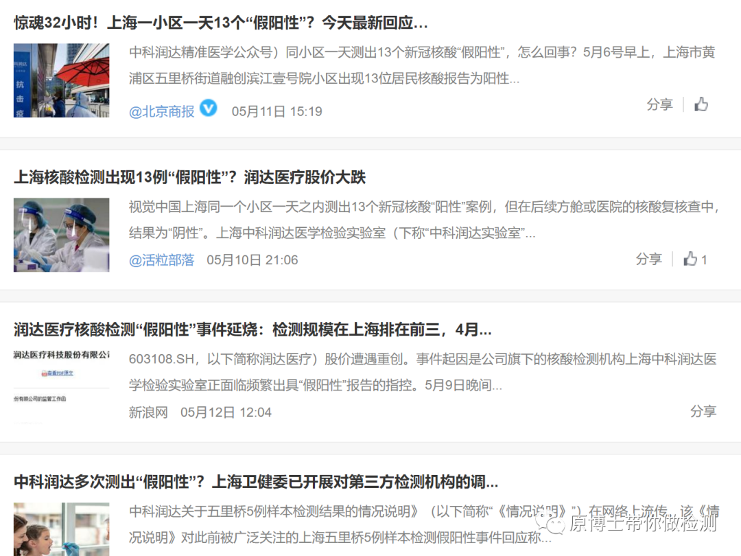 最近有两个事件引人瞩目,一个是上海的“假阳性”事件:  另一个是“北京多例感染者出现症状后核酸仍为阴性”事件: “5月4日,在北京市新型冠状病毒肺炎疫情防控工作新闻发布会上,市疾病预防控制中心副主任、全国新型冠状病毒肺炎专家组成员庞星火介绍,疫情分析发现多例感染者出现呼吸道症状后核酸检测仍为阴性的情况。”“在5月9日下午举行的北京市新冠肺炎疫情防控工作新闻发布会上,北京新冠肺炎疫情防控工作领导小组检疫检测工作组副组长,北京市卫生健康委员会副主任、新闻发言人李昂通报称,在近期的飞行监督检查中发现,个别核酸检测机构存在送检不及时、报告不准确、实验室管理不严格等问题,严重影响核酸检测质量和疫情防控工作效果。” 我今天不去探讨阴谋论和由于检测实验室技术和管理不规范导至的假阴性和假阳性,而是从大规模群体筛查的角度去分析假阳性和假阴性可能产生的因素。本文和前几篇文章存在很强的逻辑关系,相关概念不清楚的可以看看以往的文章。 世界上没有“完美”的检测方法,由于任何检测方法的敏感性和特异性都无法达到100%,因而都存在假阴性或假阳性。- 由于不同检测方法的最低检测限LOD不同,比如荧光定量PCR核酸检测的LOD为10^3 copies/ml病毒粒子,而胶体金LOD为10^6 copies/ml病毒粒子,因而会造成核酸检测为阳性而胶体金检测为阴性的假阳性,但这并非试剂的质量有问题而是方法学上的固有性能差异。