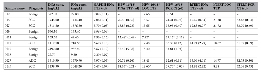 在高收入国家,有效的宫颈癌筛查降低了其发病率和死亡率,但在全球范围内,2020年估计有600000例宫颈癌病例,342000例死亡。其中90%以上发生在中低收入国家(LMICS)。宫颈癌发病的唯一最重要的致病因素是HPV感染。病毒基因组整合到宿主染色体中,使得病毒癌基因HPV E6和E7能够通过干扰有丝分裂期间的着丝粒复制来促进基因组不稳定性。这导至了染色体重排和拷贝数变异。因此,通过Hybrid Capture-2或G5+/6+分析进行HPV DNA初步筛查,需要使用聚合酶链反应(PCR)和昂贵的热循环设备进行信号扩增或靶向扩增,被认为是宫颈癌检测的有效方法。 用Lugols碘或醋酸目视检查宫颈是一种潜在的低成本替代筛查策略,但对患者来说很不舒服,并且存在与目视检查相关的偏差。利用HPV以及肿瘤特异性标记物进行核酸扩增,进行一项可靠、易于实施的护理点检测,将是全世界宫颈癌检测的重要分诊工具。对于宫颈癌检测,选择最佳的HPV和肿瘤标记物至关重要。据报道,HPV-16和HPV-18导至高达70%的宫颈癌病例,分别约有60%和10%的病例出现;其他流行的HPV类型的发生率因地区而异。此外,癌细胞的增殖能力部分是通过端粒维持实现的,而端粒酶在HPV阳性癌症中普遍表达。hTERT(人类端粒酶逆转录酶)是一种端粒酶成分,在宫颈病变中显著过度表达,至少在90%的宫颈癌中可检测到,但在正常组织中呈低至零表达。因此,它是一种潜在有用的肿瘤特异性标记物。 环介导等温扩增(LAMP)方法已用于DNA和RNA的护理点检测,包括SARS-CoV-2和乳腺癌标记物。LAMP最初由Notomi等人开发,用于在单一温度下(通常在63到65度之间)快速扩增核酸无需PCR仪,从而使该技术成为护理点检测的理想技术。LAMP最初设计有四个引物,但Nagamine等人将其扩展到六个,会显著加速反应从1小时至10-15分钟。 近日,来自英国的研究团队在杂志Scientific reports上发表了一篇题为“Lab-on-chip assay of tumour markers and human papilloma virus for cervical cancer detection at the point-of-care”的文章,研究团队使用针对HPV DNA和hTERT mRNA的优化设计引物,将LAMP技术转化为LoC设备,并测试其检测宫颈癌的能力。LoC上的LAMP技术已被应用于乳腺癌生物标记物的检测和包括2019冠状病毒疾病在内的传染病诊断。LoC设备基于CMOS技术和离子敏感场效应晶体管(ISFET)传感器,与环介导等温扩增(LAMP)分析相结合,用于扩增HPV DNA和人类端粒酶逆转录酶(hTERT)mRNA。分子靶点的分析灵敏度达到每个反应一个拷贝的mRNA标志物,实现了hTERT的100的检测限。在组织样本中,4/5的恶性组织和2/5的良性组织中存在HPV-16 DNA,1/5的恶性组织和1/5的良性组织中存在HPV-18 DNA。在所有恶性组织和非良性组织中均检测到hTERT mRNA,已证实的试点数据表明,在资源有限的情况下,大规模使用LoC进行宫颈癌筛查的潜力。 图片来源:Scientific reports 主要内容 检测限和TTP 对hTERT和GAPDH mRNA的LAMP分析采用10倍的连续稀释的合成RNA进行测试,每个反应范围为10 7到10 0拷贝。标准曲线如图1所示,具有良好的线性关系(R 2=0.99),检测限分别为100和1000份/反应,最大TTP(阳性时间)分别小于20和10分钟。 合成RNA中测试检测限和TTP。 图片来源:Scientific reports pH-LAMP中人类标记物的分析灵敏度。 使用LOC对45份来自当地组织采集的可用样本中的10份进行了HPV DNA和hTERT mRNA验证,其中DNA和RNA的数量和质量表明由于细胞数量多,提取效果良好。根据病理学分类,在这10个宫颈活检标本中,有5个良性,4个鳞状细胞癌(SCC)和1个腺癌(ADC)。 使用LC96设备,在样品H5、H7、H17和H27中检测到HPV-16 DNA,而在样品H11和H45中检测到HPV-18 DNA。LoC平台成功确认了检测结果,所有结果总结在表1中。两例(H2和H12)在使用pH-LAMP的LC96设备上HPV-16 DNA呈阴性,但在LoC平台上测量时呈阳性。使用PCR引物证实这些样本中存在HPV-16 DNA。为了解释这种差异,可能是这两种样本中的HPV-16 DNA拷贝数都处于检测极限,LoC上的较大样本检测体积能够检测到检测极限边缘的较低拷贝数。在5/5的癌症样本和0/5的良性样本中检测到hTERT mRNA的存在,完美地区分了肿瘤样本中的良性样本,使用LoC平台证实了结果。系统之间近乎完美的一致性表明了该平台用于进一步检测的潜力。LoC平台上所有测试的阳性时间(TTP)均少于25分钟,这证明了该系统在便携式平台上提供快速、准确结果的真正护理点潜力。 LC96系统和LoC平台上pH-LAMP或PCR测试结果汇总表。图片来源:Scientific reports 总结与讨论 这项初步可行性研究表明,LoC设备能够使用LAMP从宫颈组织活检中准确检测宫颈癌的存在。HPV DNA和hTERT mRNA共同作为标志物使得灵敏度和特异性都很高,避免了单独检测HPV DNA的测试问题,如果不与其他筛查测试一起进行,可能会有很高的假阳性率。此外,HPV DNA筛查方法依赖于昂贵的设备,尤其是受宫颈癌影响最大的LMIC。其他筛查方法,如HPV“自检”试剂盒,基于对HPV菌株抗体的检测,并主要检测高危菌株,取决于宿主对HPV存在的免疫反应,可能呈假阴性,尤其是在感染的急性期。基于芯片的生物传感器电化学系统也被报道用于检测HPV DNA。 相比之下,本文描述的系统使用了一种LoC系统,它可以执行芯片实时DNA扩增,并且能够通过LAMP检测病毒DNA。这简化了DNA/RNA扩增的读出,并且可能适用于筛选应用所需的高通量。对HPV进行DNA验证,对hTERT进行类似的RNA验证。选择hTERT是因为以前的文献表明,由于hTERT在正常组织中不表达,因此它在宫颈癌中是一种很有前景的肿瘤标