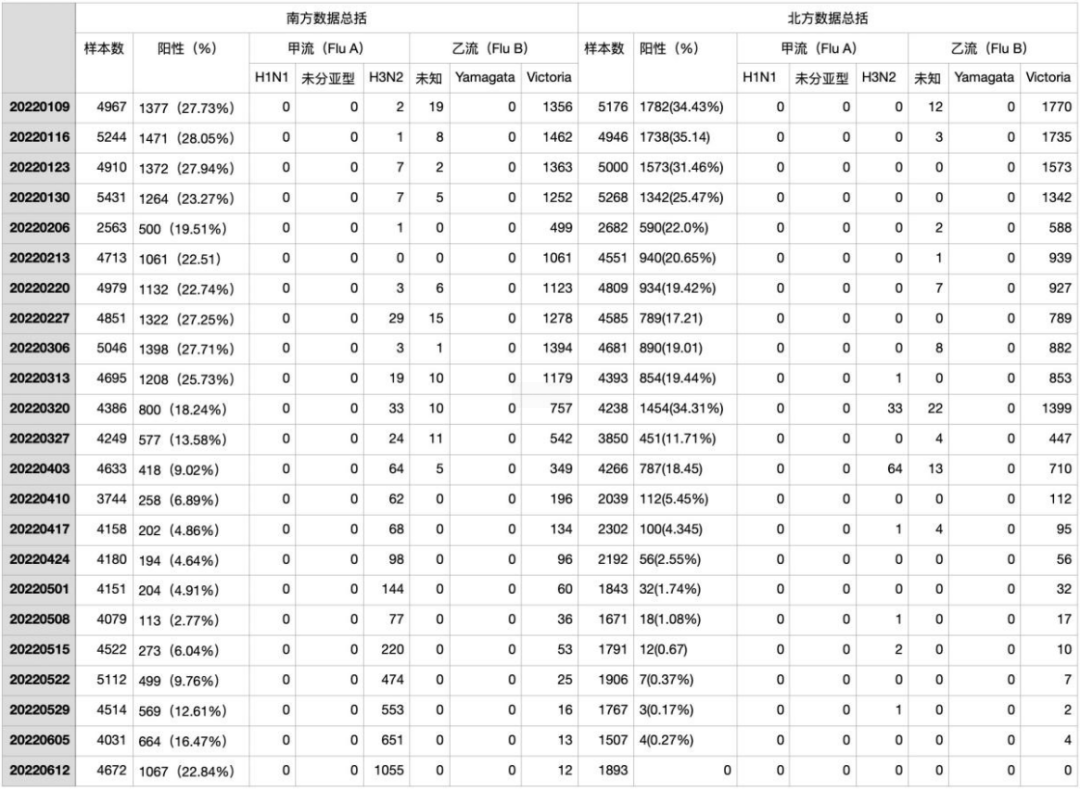 2022年上半年我国南方和北方流感临床实验室进行的测试结果差异较大,具体总结如下。
