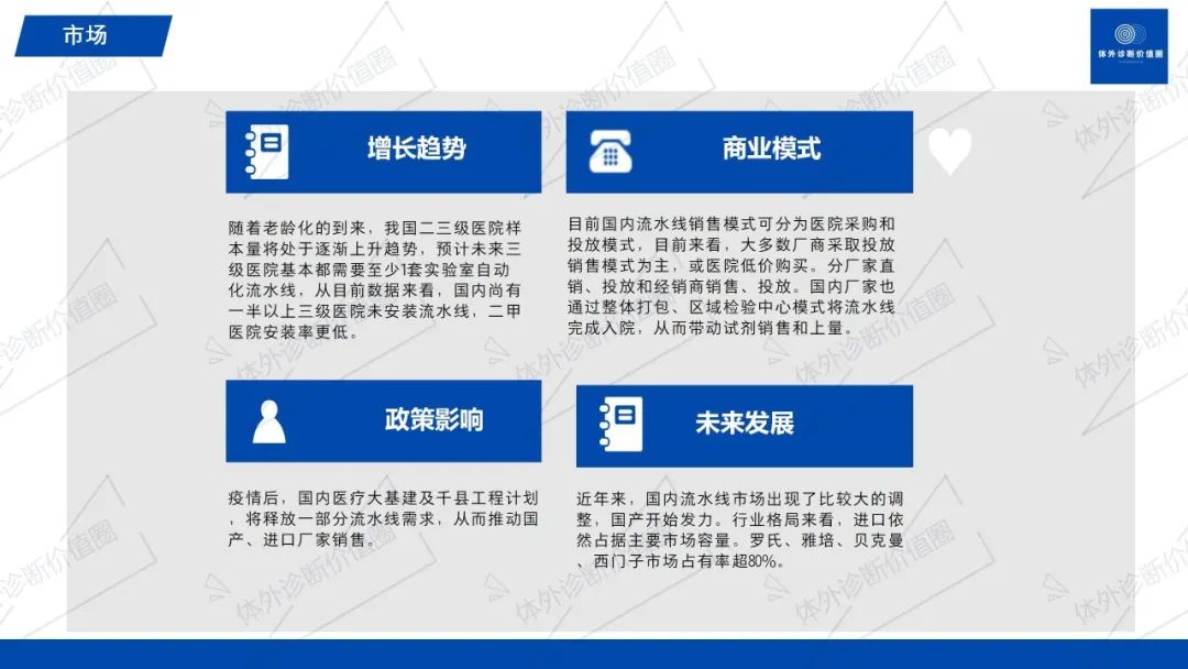 局部分析来看: - 三级医院、二级医院及体检中心检验需求旺盛,但常面临:1)人工成本居高不下,2)人工操作导至的错误难以避免,3)检测效率亟待提升等痛点。
