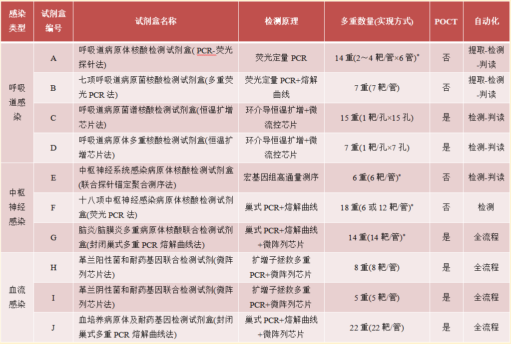 注:*. 试剂盒A、E、F和G同时检测病原菌和病毒;POCT. 即时检验。
