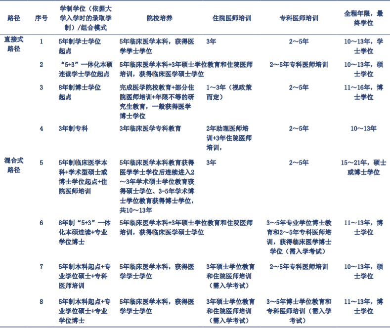 多种学制、多种培养路径,造成了当下中国医学教育的混乱局面。 专家建议,应遵从医学教育人才培养规律,从培养能力胜任的临床医生、合理构建全科医生与专科医生的比例、搭建长期可持续发展高素质全科医生培养体系等方面着手,来进行医学教育的改革。 学制,从1到12?