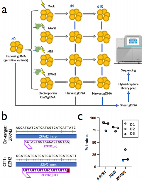 基因组编辑/基因治疗在临床上的长期安全性的重要性最近得到了说明,在两个镰状细胞疾病基因治疗试验(NCT02140554和NCT04293185)中,两名患者因细胞毒化疗或慢病毒载体的插入突变而发展为髓系恶性肿瘤后导至临床试验暂停。由于这些安全性问题,在本研究中,研究团队试图确定Cas9编辑和/或体外扩增过程中是否引入了致癌变体。理想的方法必须进行超深测序,因为变异等位基因频率(VAF)低于1%的突变仍然无法被大多数全基因组脱靶检测技术检测到。能够检测SNV以及INDEL、扩增和多核苷酸变异(MNV)的超深测序工作流程有可能显著提高检测全谱致癌脱靶编辑活性的灵敏度,从1%到<0.1%VAF,这对于识别可能引发致病性克隆扩增的低频变异是必要的。