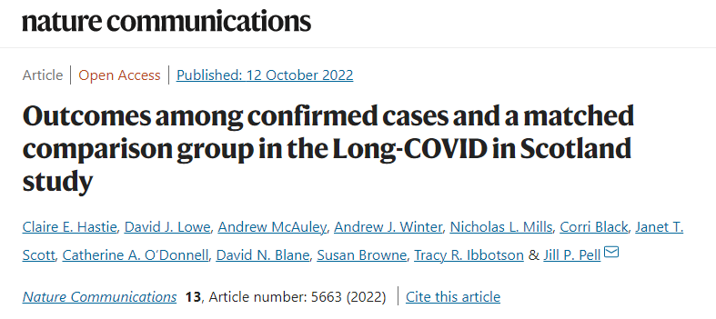 疫情两年多以来,越来越多的证据表明,新冠不只是一种呼吸系统疾病,而是会影响人体多个组织和器官。常见的后遗症有:嗅觉失灵、疲劳、呼吸困难、认知能力下降、甚至是抑郁症。 2022年10月12日,英国格拉斯哥大学的研究人员在" Nature Communications "期刊上发表了一篇题为" Outcomes among confirmed cases and a matched comparison group in the Long-COVID in Scotland study "的研究论文。 该研究是迄今为止关于后遗症的最大规模研究之一,研究显示,无症状感染者,没有新冠后遗症,感染之前接种了疫苗的人出现某些后遗症的风险较低。 在该研究中,研究人员分析了英国居住在苏格兰的96238名参与者,其中33281名为新冠确诊感染者,62957名是从未被感染的对照组,平均年龄为45岁,在6个月、12个月和18个月时检查了参与者的后遗症症状。 总体而言,在有症状感染者中,48%的新冠感染者在感染后6-18个月内仍有后遗症,包括42%的感染者仅报告部分康复,6%报告根本没有康复。 报告最多长期后遗症包括疲倦、头痛、失去味觉、肌无力、呼吸困难、脑雾等。与从未感染组相比,感染者失去嗅觉的可能性几乎高出9倍,味觉丧失的风险高出6倍,呼吸困难的风险高出3倍。 此外,研究发现,在需要住院治疗的严重感染后,更可能出现长期的后遗症。先前存在心血管疾病和精神疾病的人,也更有可能经历长期的症状。 有症状和心血管疾病者,后遗症风险高 重要的是,研究还发现,无症状感染者,没有新冠后遗症,在感染之前接种了疫苗的人,出现某些持续症状的风险较低。 研究人员表示,发生后遗症的可能性与参与者感染的严重程度有关。 接种疫苗,后遗症风险降低 尽管大多数参与者的恢复状态在随访期间保持不变,但有13%的人报告随着时间的推移逐渐改善。然而,还有11%的人症状出现恶化。 研究人员表示,虽然大多数人在感染后会迅速完全康复,但有些人会出现各种各样的长期问题。将18个月后未恢复的6%和部分恢复的42%加起来,这意味着,几乎一半的感染者仍会出现持续症状。 尽管研究结果如此,研究人员也强调了局限性,参与者中有96%是白人,因此需要通过多样性人群来确定长期后遗症特异性结果。 总之,该研究发现,无症状感染与新冠后遗症无关,接种疫苗可降低一些后遗症的风险。 最后,研究人员强调,这项研究为接种疫苗提供了新颖而重要的证据,完全接种新冠疫苗可以降低后遗症的风险,因此我们鼓励那些有资格接种疫苗的人通过接种疫苗来加强保护。 |