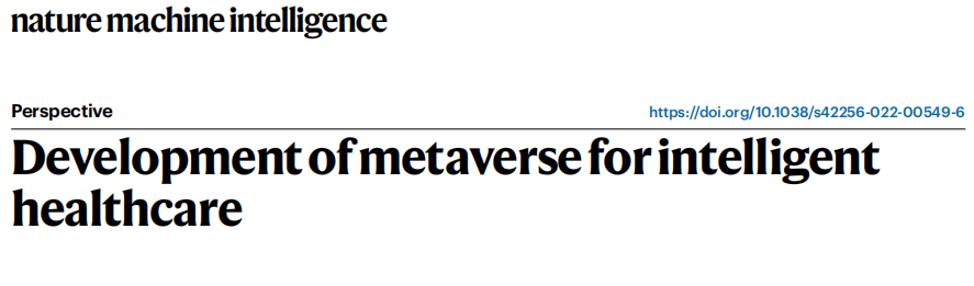 《Nature machine intelligence》智能医疗元宇宙的发展