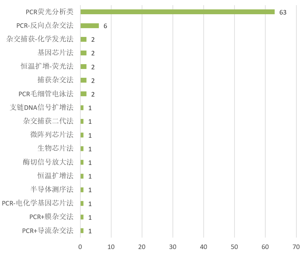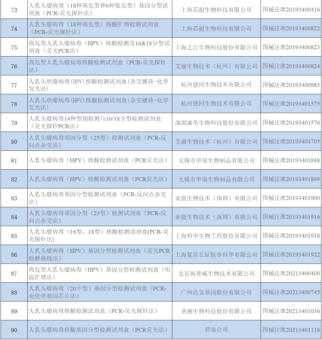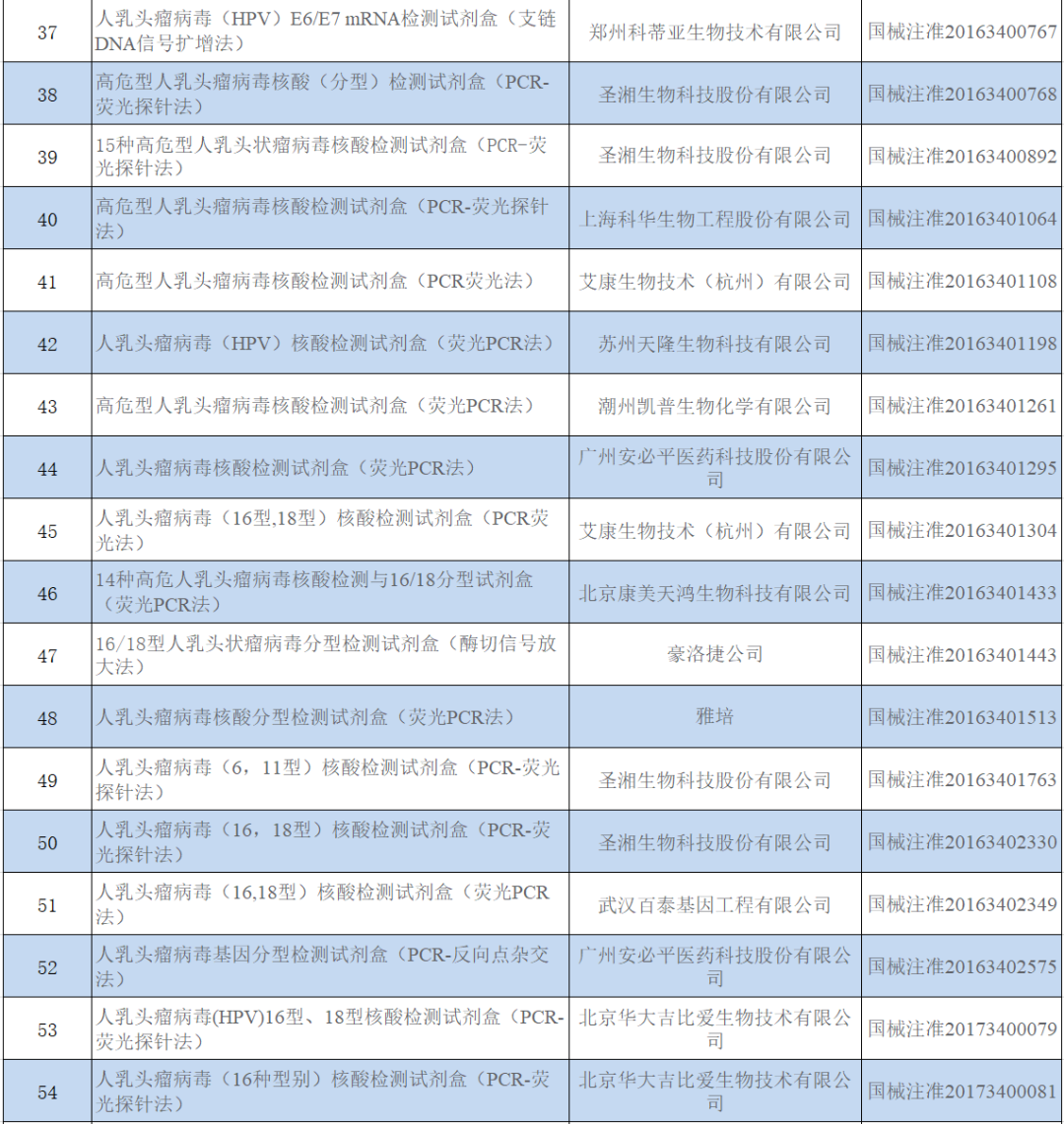 今天给大家带的内容是关于HPV检测市场的政策利好: 1月20日,国家卫健委发文《关于印发加速消除宫颈癌行动计划(2023-2030)的通知》提出:到2025年,适龄妇女宫颈癌筛查率达到50%;到2030年,适龄妇女宫颈癌筛查率达到70%。按照目前宫颈癌筛查策略,保守估计以第一阶梯宫颈细胞学检查和HPV检查为主的筛查市场将扩大1倍以上! 全世界对宫颈癌筛查制定了“三阶梯筛查”标准诊疗程序。 第一阶梯是宫颈细胞学检查和HPV检查, 第二阶梯是阴道镜检查, 第三阶梯是组织病理学检查。 一般来说,宫颈癌筛查的基本流程是一个阶梯一个阶梯来的,首选细胞学和HPV检查,当结果有异常的时候,再进行阴道镜检查,如果诊断觉得还不够充分,就再进一步做组织病理学活检。“三阶梯筛查”在宫颈病变及宫颈癌的诊疗程序中缺一不可并且不可颠倒顺序,只有在规范的筛查流程下才能有效的识别出宫颈癌前病变,从而阻断宫颈癌的发生发展。 宫颈细胞学筛查 在我国,宫颈癌筛查市场需求量大,病理医生资源严重不足。据美国妇产科医师协会(ACOG)指南推荐,25~65岁无高危因素的妇女每3年进行1次子宫颈细胞学筛查。而我国的注册病理科医师不足20 000名,适龄筛查女性人数为380 352 945例(据国家统计局第6 次人口普查),供需失衡,亟需待补。 随着筛查率的提升,宫颈细胞学检测市场也将迎来放量,预计未来将有较大的增长潜力。 HPV检测市场: HPV是常见致病性病原体之一,据优咨康统计,截止到2022年5月28日,获证的HPV核酸检测类产品90款:境内82款,境外8款,见图1。涉及公司49家:境内企业44家,境外企业5家,见图2,产品详细信息见表1。 图1 试剂盒境内外分布图 图2 试剂盒公司境内外分布图 表 1 HPV试剂盒公司列表 获证数靠前的5家公司为:圣湘生物(5款产品)、潮州凯普(5款产品)、艾康生物(5款产品)、上海之江(4款产品)和泰普生物(4款产品),具体数据见表2。 表 2 HPV试剂盒公司列表 产品年度批准情况见图3。 图3 试剂盒年度获批情况 备注:产品年度按注册证编号前4位统计,有些产品的年度和获批年度不一致。 上述的90款试剂盒中共涉及了17种方法学(根据试剂盒名称获得数据),其中PCR类占据70%以上,具体数据见图4,后续待进入的产品采用PCR技术的也很多(见表3)。近年来,PCR领域的产品获证数量持续减少(参考【核酸扩增篇】已上市IVD产品分析报告(880款试剂盒,160款仪器,288家公司)),可能是因为新冠疫情影响了企业商业布局,也可能是因为该领域竞争太激烈,很多企业不再布局。 不过随着PCR仪的市场装机数量迅猛提升(新冠防疫政策影响,预计增加了几万台,已经布局到很多县级医疗机构),选对合适的应用场景,笔者认为PCR技术平台还是潜力巨大的(很多仪器公司和试剂公司已经在加紧布局了)。 图4 试剂盒技术/方法分布 备注1:PCR荧光分析类含:PCR-荧光法、PCR-荧光偏振法、PCR-荧光探针法、荧光PCR法、荧光PCR染料法、荧光PCR熔解曲线法、荧光PCR-熔解曲线法、荧光探针PCR法、荧光探针法和PCR多色荧光法; 备注2:有些试剂盒的方法原理可能一样,只是试剂盒中名称表述不一,上述分类可能会存在把其分在不同类别的情况(根据产品名称进行判断,会存在不足的地方); |