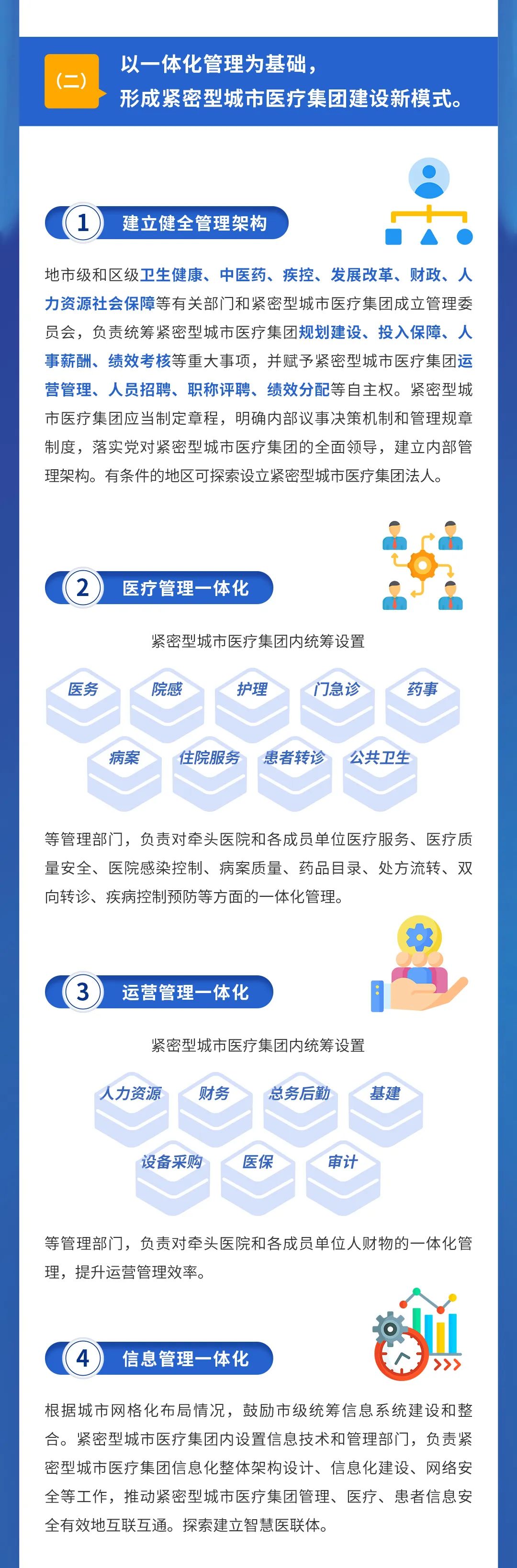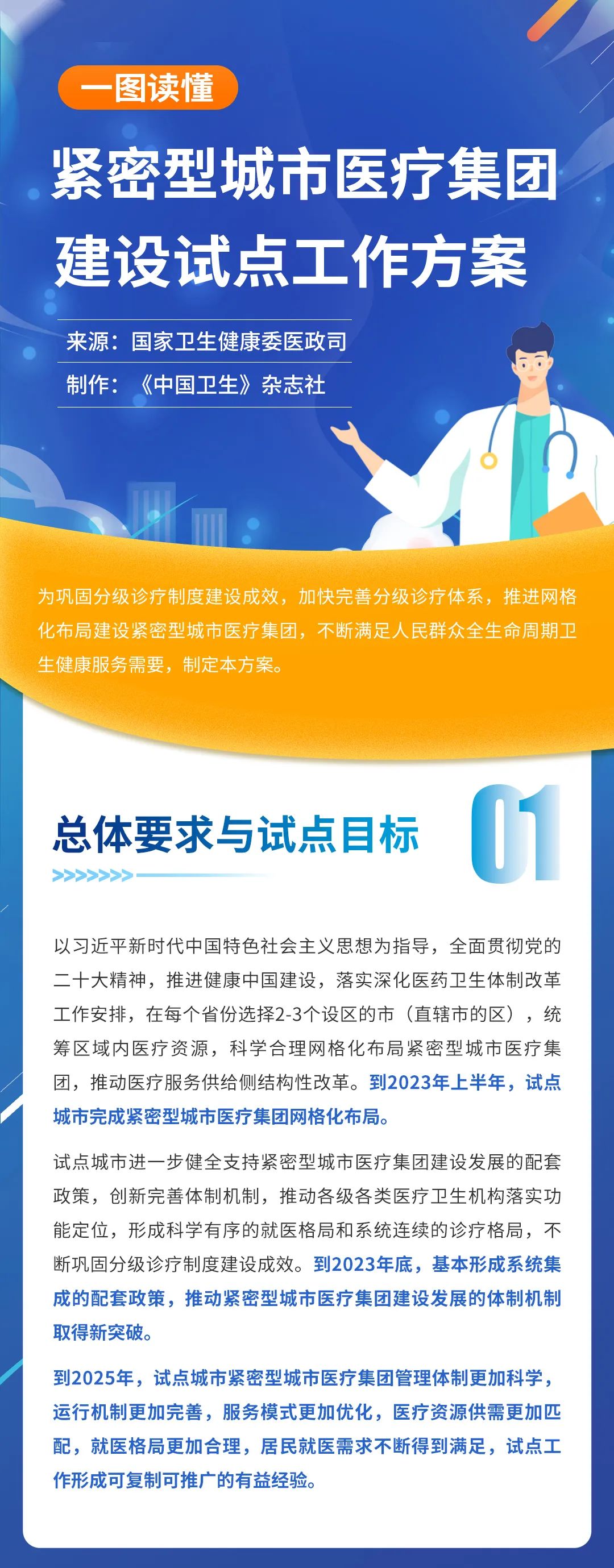国家一纸通知下发, 事关全国公立医院! 2月9日,国家卫生健康委、国家发展改革委、财政部、人力资源社会保障部、国家中医药局、国家疾控局等六部委决定在全国开展紧密型城市医疗集团建设试点,并印发了《紧密型城市医疗集团建设试点工作方案》(以下简称《方案》)。 这是由三级公立医院或能代表辖区医疗水平的医院(含中医医院)牵头,基层医疗卫生机构(区县医院、社区卫生院等)为成员的医疗联合体,为辖区居民提供预防、治疗、康复、健康促进等一体化、连续性健康服务。 集团内各医院不仅加强协作,同时还将带动基层医疗卫生机构服务能力和管理水平提升,实现优势互补,资源共享。 此前,成都等7个国家城市医联体试点城市共组建33个城市医疗集团,每个试点城市至少建成了一个具有明显成效的城市医联体。例如: