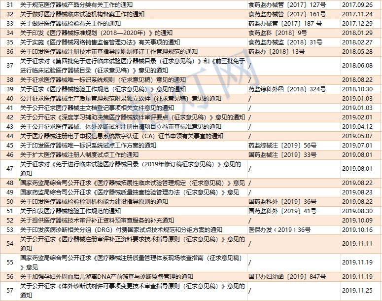 最新汇总指路:https://www.iivd.net/article-23792-1.html 自新版《医疗器械监督管理条例》(国务院令第650号)于2014年6月1日起实施以来,其配套规章及规范性文件陆续出台,大部分于2014年10月1日起正式实施。 以下是国家食品药品监督管理总局已经发布和正在征求意见的系列法规文件,小桔灯网整理如下: |