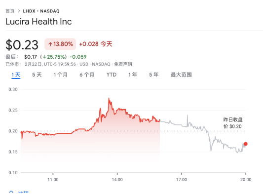 Lucira Health生产的一次性新冠自测试剂盒Lucira Health成立于2013年2月20日,是一家医疗技术公司,专注于开发和商业化的传染病检测试剂盒。2020年11月,Lucira Health推出“新冠自测试剂盒”,是首个获得FDA批准的家庭自测试剂盒。据Lucira Health网站介绍,该一次性新冠自测试剂盒售价为34.99美元,能够检测出COVID-19变体,包括奥密克戎(Omicron)和BA、BQ变种,阳性最快11分钟出结果,阴性最快可在30分钟内出结果,Lucira Health称自测试剂盒精准度高达98%。在新冠疫情在世界范围内蔓延,新冠自测试剂盒需求激增,Lucira Health在近几年内获得了迅速发展,并于2021年2月上市。根据其财务数据的披露,Lucira Health在2021年营收规模为9305万美元,同比暴增34492.94%,净亏损进一步扩大至6482.7万美元,同比增加73.58%。Lucira Health曾在2022年第一季度短暂地扭亏为盈,随后又陷入亏损中,最新一季度数据为2022年第三季度,营收规模为3439万美元,净亏损高达1.27亿美元。Lucira Health总裁兼首席执行官Erik Engelson在声明中说道:“随着2022年全球多地疫情政策的优化,我们发现市场对新冠自测试剂盒的需求有所下降。再加上为2022-2023年流感季节开发的自测试剂盒,监管审批速度低于预期,导至收入和资本化不足以抵消支出。”值得注意的是,2022年10月,Lucira Health为了自救,董事会曾批准了各种方案,以重新平衡Lucira Health的成本结构并寻找新出路,其中包括成本削减计划、裁员并重新调整了几项供应商协议,以及聘请美国咨询公司Armanino LLP寻求各种战略选择,包括潜在的业务出售。不过这些并未改变现状,Lucira Health在破产申请中列出了约1.46亿美元的资产和约8500万美元的负债。 Lucira Health上市时,发行价为17美元,截至当地时间2月22日收盘,Lucira Health报收于0.23美元,盘后股价下跌25.75%至0.17美元。