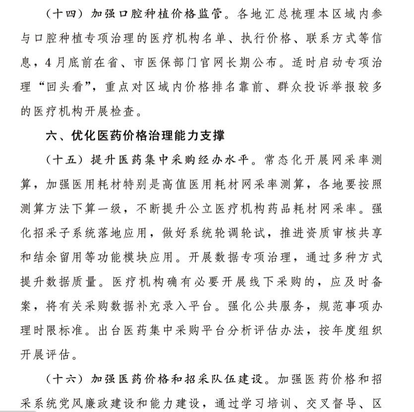 图| 拍信创意 2023年带量采购“预告”公布,一场更大范围和力度的价格内卷来了。2023全国耗材集采重点:心内科、吻合器、超声刀…今日(3月1日),国家医保局办公室发布《关于做好2023年医药集中采购和价格管理工作的通知》(以下简称《通知》),公布2023医药集中采购和价格管理工作重点(文末附全文)。 根据《通知》,2023年医药集中采购和价格管理工作要按照全国医疗保障工作会议部署,以改革创新、精细管理、蹄疾步稳为工作总基调,进一步完善医药价格形成机制,促进医保、医疗、医药协同发展和治理,向人民群众提供优质高效、经济合理、方便可及的医药服务。尤为值得关注的是,在这份文件中,全国、省际联盟耗材带量采购重点首次披露,心内科、骨科、普外科、体外诊断试剂、神经外科等诸多领域被点名。《通知》指出,扎实推进医用耗材集中带量采购。按照“一品一策”的原则开展新批次国家组织高值医用耗材集采。做好脊柱类耗材集采中选结果落地执行,参照人工关节置换手术价格专项调整的做法,优先调整与脊柱类耗材集采相关的手术价格。适时启动人工关节集采全国统一接续。聚焦心内科、骨科重点产品,指导更多省份推进吻合器、超声刀等普外科耗材集采,继续探索体外诊断试剂集采,各省份至少开展1批省级耗材集采。重点指导陕西牵头开展硬脑(脊)膜补片、疝修补耗材省际联盟采购,河南牵头开展神经外科等耗材省际联盟采购,安徽牵头开展体外诊断试剂省际联盟采购。一方面要落实口腔种植综合治理措施。落地实施种植体系统集采结果,引导医疗机构优先采购使用中选产品。四川医保局率先开展牙冠竞价挂网,其他省份及时跟进联动四川的牙冠挂网价。各省于2月底前出台口腔种植医疗服务价格治理政策文件,于4月中旬前全面落实全流程调控目标。另一方面要加强口腔种植价格监管。各地汇总梳理本区域内参与口腔种植专项治理的医疗机构名单、执行价格、联系方式等信息,4月底前在省、市医保部门官网长期公布。适时启动专项治理“回头看”,重点对区域内价格排名靠前、群众投诉举报较多的医疗机构开展检查。据了解,覆盖全国所有省份的种植体集采于今年1月开标,中选产品平均价格降至900余元,平均降幅55%。本次集采汇集全国近1.8万家医疗机构的需求量,达287万套种植体系统,约占国内年种植牙数量(400万颗)的72%,预计每年可节约患者费用40亿元左右。具体而言,要创新完善集采规则。着眼全国统一大市场建设,坚持公平公正、公开透明,防止地方保护、区分内外资、关联性较小因素加分等影响公平竞争的做法。坚持带量基本原则,综合考虑市场竞争格局、企业生产供应、信用和履约情况、产品质量或临床认可度等因素完善采购规则,倡导多家中选。畅通对围标、串标行为的举报渠道,加大惩戒力度。对不同等级失信行为精准运用医药价格和招采信用评价结果,防范通过批件转让等方式规避失信惩戒责任。要着力提高报量准确性。运用历史采购量复核医疗机构报量,提高报量与临床实际使用的匹配度,对“用而不报”、刻意少报或接续采购报量明显低于上一轮集采的,在报量阶段即要求整改或作出说明。集采结余留用资金严格与报量挂钩,在执行到位的前提下,做到多报量多留用、少报量少留用、不报量不留用。《通知》指出,要强化落实优先使用中选产品。各省份要加强对医疗机构采购情况监测分析,通过通报、约谈提醒等手段抓好督促整改,要将监测、通报和约谈提醒具体到医疗机构,并通过医疗机构传导至医务人员。国家医保局将定期通报各省份中选产品采购情况,对执行情况好、监管力度大的先进典型予以表扬,对执行不力的加强督导。优化完善结余留用政策,实施DRG/DIP付费的统筹地区,对药品耗材集采降低的费用,在确保患者享受实惠的前提下,体现医院和医保共享,提高基金使用效率。加强中选产品供应保障。建立医疗机构、生产配送企业、医药集中采购机构间集采品种供应保障的有效反馈机制,提升应对供应配送问题的灵敏度,及时采取加大供应调配、替补供应等措施,对不能按要求供应的企业,依情节给予相应等级信用评价。发挥好带量采购对于稳预期的作用,探索提升短缺和易短缺等药品保供稳价水平。根据《通知》,2023年将实施全国医药价格监测工程,常态化监测医院耗材采购价格。不合理的价格设置、价格变动,将被严查。《通知》指出,丰富用好医药价格治理制度工具。实施全国医药价格监测工程,对重点医疗服务价格项目、医院药品耗材采购价格等开展常态化监测。探索建立医药价格信息监测和发布制度。配合做好短缺药品保供稳价,强化短缺药品价格和配送信息监测与应对处置。编制医药价格指数,拓展指数运用场景和支撑决策功能。做好医药价格招采信用评价,进一步推动信用评价向生产企业穿透。配合有关部门查办重点案件,落实相应处置措施。针对涨价过快的品种和医疗服务价格项目,探索要素成本测量。此外,挂网情况将受到更为严格的监管,价格信息的共享也将推进。《通知》指出,要加强挂网药品价格管理。按要求做好新版目录谈判药品和竞价药品的挂网工作,并加强日常监测和动态管理。规范药品挂网撤网工作,撤网信息在集采平台系统内部发布,撤网药品的原价格信息保留3年