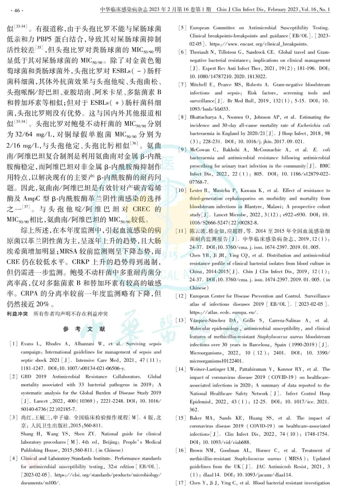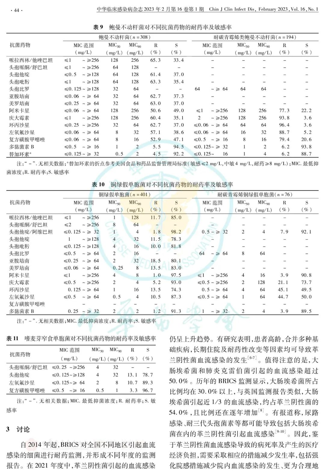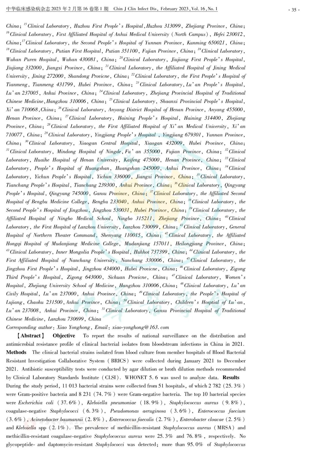2021年度全国血流感染细菌耐药监测(BRICS)报告正式发表在《中华临床感染病杂志》 ...