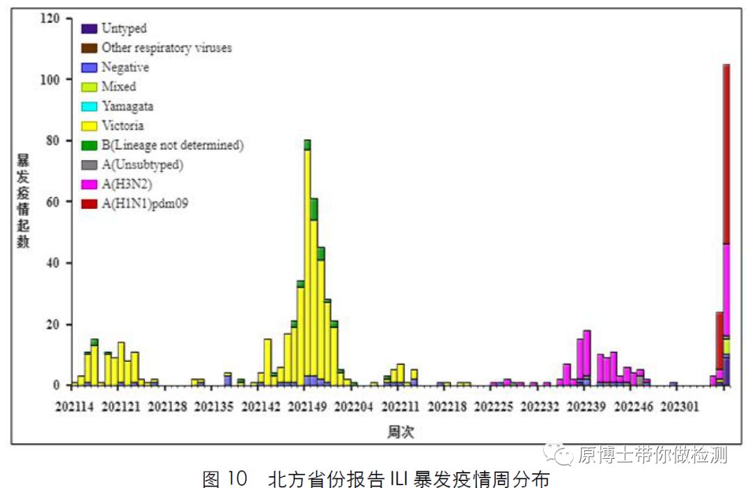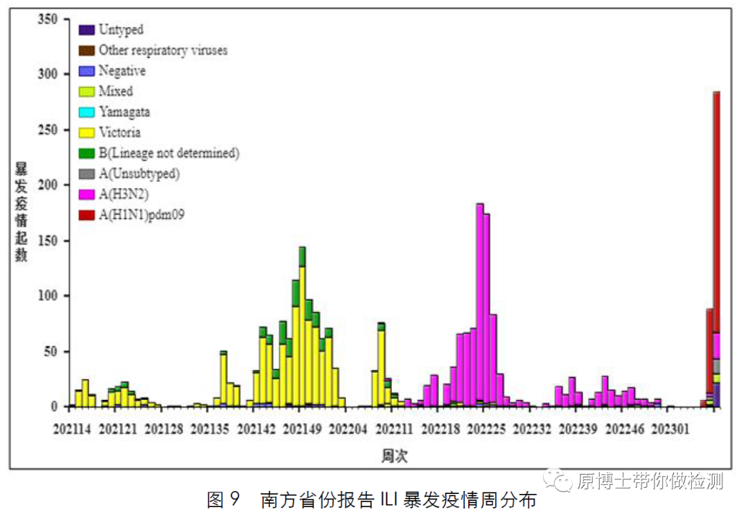 国家CDC 2023年第8周流感周报监测数据显示,本周南、北方省份流感病毒检测阳性率继续上升,A(H1N1)pdm09 为主、A(H3N2)亚型流感病毒共同流行。南、北方省份流感样病例百分比继续上升。本周共报告390 起流感样病例暴发疫情。经检测277 起为A(H1N1)pdm09,54起为A(H3N2),15 起为A 型(亚型未显示),13 起为混合感染,1 起为流感阴性,30 起暂未获得病原检测结果。可以看出本次的流感流行中A(H1N1)pdm09为最主要的流行毒株。