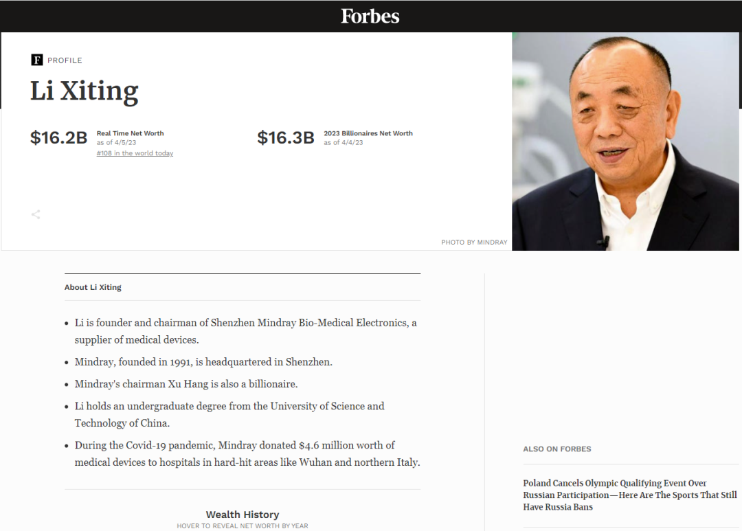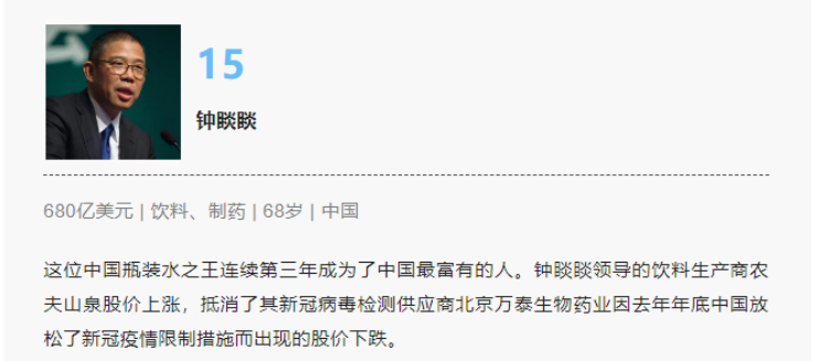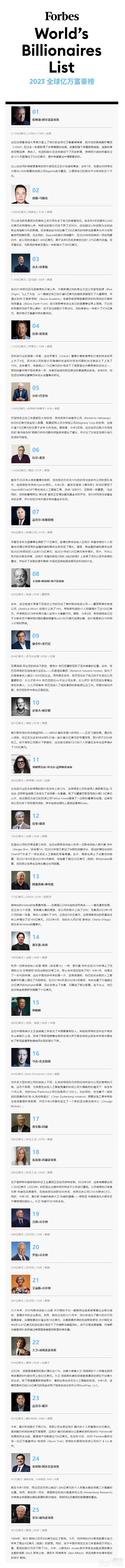 4月4日,福布斯发布2023全球亿万富豪榜。2023福布斯全球亿万富豪榜的上榜人数较去年下降28位,总人数仅2,640位。今年上榜者的财富总额达到12.2万亿美元,较去年的12.7万亿美元也有所下降。在所有上榜富豪中,美国富豪数量为736位,位居全球第一。中国大陆地区紧随其后,富豪数量为562位。在今年的榜单上,中国内地富豪的表现略有退步。在《福布斯》第37次年度全球亿万富豪榜单中,中国内地富豪数量连续第二年出现下跌。在今年的上榜者中,中国内地富豪数量为495位,较去年的539位以及2021年创纪录的626位有所下降。农夫山泉董事长、万泰生物实控人钟睒睒仍然位居中国首富宝座,这已经是他第三年成为中国首富。钟睒睒的财富约为680亿美元,较去年的657亿美元依然实现增长。他在本次全球亿万富豪榜上排名第15位。另一位广为人熟知的迈瑞医疗董事长李西廷以163亿美元排名103位。附前25名名单: IVD资讯整理自福布斯官网 |