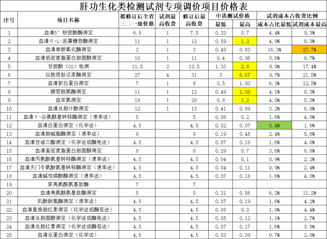 近期,江西医保局发布《关于肝功生化类检测试剂涉及医疗服务价格项目专项调价的通知》(征求意见稿)在网络流传,真实性有待考证。小编整理了一下,以飨读者。 至此,江西医保局牵头的肝功类生化试剂集采,在历经10个月的漫长周期,终于有了实质性的落地进展。从文件可以看出,江西医保局对于肝功集采的推进小心翼翼,没有想象中的干净利落。 从公布的文件可以看出,25个项目中,其中10项医疗服务价格项目收费实行技耗分离,检测试剂均作为项目除外内容,执行“零差率”销售政策,根据前期对肝功生化类检测试剂专项调价成本测算进行充分论证,设定出各级公立医疗机构的最高指导价格,不得上浮,下浮不限(详见附件)。其余15项医疗服务价格项目因集采后试剂成本较低,仍按原方式计价,不实行技耗分离。 在执行范围上,此次调整,完全打破了原收费按医院等级不同的标准,全省三二一级公立医疗机构收费按附件专项调价项目价格表统一执行,收费不再区分医院等级。非公立医疗机构和医学检测实验室等第三方检测机构提供以上检测服务,倡导参照公立医疗机构检测价格。 如果按这个价格执行,推广到全国,那么问题也很多。拿单胺氧化酶举例,江西省含试剂收费不超过3元。但全国的收费目前4-15元不等(山西收费15元),如果全国执行,那单胺氧化酶收费的降价幅度达到80%。 其他项目都是从5元调整为4.5元,降幅10%。 这其中,缺少了铜蓝蛋白的收费调整,没有出现在价格目录里面。 低密度实行技耗分离收费,但高密度为常规收费,并没有按小套餐形式区分。 检测试剂由于执行集采,进院价格下降,但在技耗分离和常规收费两种情况下,面临的是耗材成本的变化。从目前调整的价格可以看出,由于技耗分离收费,虽然是技术服务费+试剂成本,但由于技耗分离明确了“单人单次包含检测试剂价格的总和不得超过”一定金额,导至技耗分离的最高限价出现。 在所有的目录中,按中选测试包装的最高价格来看,有5个项目需要在中标价的基础上下调入院价格,才能达到最高限价的要求: AFU测试中选最高价1.2元,试剂最高限价收1元; CG测试中选最高价2.8元,试剂最高限价收2元; GR测试中选最高价6.67元,试剂最高限价收4元; ADA测试中选最高价1.08元,试剂最高限价收1元; AMM测试中选最高价1.2元,试剂最高限价收1元; 也就是说,按江西医保局集采的中选价格,在技耗分离收费的最高限价下,还面临着价格要下调的境地。这和当时招标文件所述的“医疗机构不得在中选价格基础上进行二次议价”的条款相违背,也就是说,起码这五个项目,成交价格和中选价格没有保持一致。 由于毫升试剂的测试数量和试剂成本,受测试平台影响,会有不同的成本,但按测试包装中选来看,完全可以测算。从试剂成本占收费的比例来看,白蛋白测试包装的成本占0.4%,为项目最低;单胺氧化酶测试包装成本最高,达到27.7%。 此次肝功集采医疗服务价格调整的征求意见稿,是江西医保局肝功检测试剂省际联盟带量采购中选结果后的首次动作,也是官方发布生化类检测试剂技耗分离收费的首次正式发布。 至此,肝功生化试剂带量采购后执行方向基本确定,收费下降基本确定,技耗分离实施不及预期,只有部分产品实施。但可以肯定的是,价格调整已成定局,联盟成员单位收费实施只是时间问题,从另一个层面来讲,价格调整对于集采落地,也是具有阶段性意义的。 关于肝功集采落地措施,技耗分离收费政策走向,我们持续跟进。关注岭北山人,关注IVD集采前沿信息! |