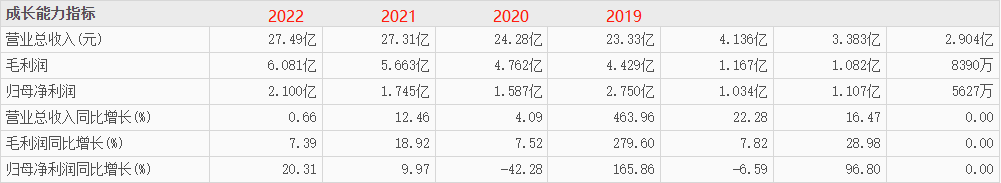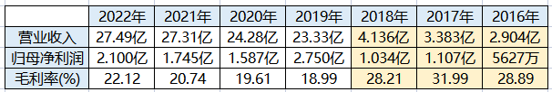 2020~2022年期间,营业收入分别是24.28亿、27.31亿、27.49亿元,虽然增长幅度小,但站稳了并购后的业绩水平;归母净利润分别是1.587亿、1.745亿、2.1亿元,与2019年的2.75亿相比,显然疫情影响还是很明显的,但也是保持了并购后的盈利水平。