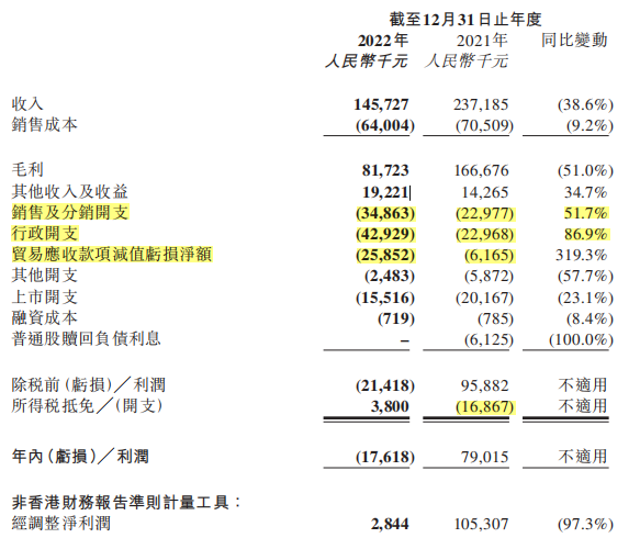 近年来,随着国家政策不断强化民众疾病预防意识,大力支持以健康体检、健康管理为代表的健康服务业的发展,“预防大于治疗”已经成为共识。在这一背景下,逐渐涌现一批基因检测、肿瘤早筛等大健康企业,体外诊断的范围进一步扩宽。 2022年6月,美年健康旗下企业-美因基因有限公司登陆港交所挂牌上市。基因检测黄金赛道得到资本的认可,与肿瘤早筛不同的是,基因检测是在没有发病的情况下预测可能产生的病变,是预防疾病的最前端,真正实现治未病的理念。 作为最前沿健康筛查技术之一,美因基因却走普惠道路,既展示技术实力又是高明的经营策略;另一方面基因检测和肿瘤早筛同时布局、应用,实现健康的防治结合,形成闭环,大幅提高疾病预防能力,增加了消费者的粘度。 从公开的年报看,2022年业绩收入约人民币1.46亿元,毛利8172.3万元,经调整净利润284.4万元,与2021年的收入2.37亿,净利润1.05亿相比,收入降幅38.6%,净利润降幅97%,上市后一蹶不振,而2020、2021、2022三年同处疫情期,似乎与上市前缺乏可比性, 那么如何理性分析看待这个差距,为什么说它在蓄势。 虚中有实 首先来看其同比的差距解释,2022年全国范围内爆发多轮新型冠状病毒疫情,政府针对疫情实施了严格的管制措施,全国多个大中城市持续封控限流,公司客户频繁闭店或经营受到严重限制,公司收入大幅下降;同时房租、人工、折旧等成本相对固定,此外,年度公司加大研发投入力度,研发人员数量增加,研发材料及临床试验等相关投入增加,使得研发费用大幅增加。 听起来云里雾里的,直接上图: 下滑幅度最大的是新冠检测服务单价减少约7倍,即使检测量增至2倍也无济于事,新冠板块大幅下降60.8%。受新冠影响的其他业务,2022年确实有加重,一般性消费级基因检测服务平均单价和检测量双下降,收入同比降低31.6%。因此消费级基因检测就下滑40.5%。 同时受影响的还有,癌症筛查服务收入为65.2百万元,同比下降35.2%。不过,自然也有其年推广并普惠性计划有关,不全是疫情的影响。随着疫情的防控优化,预计2023开始业务会逐步恢复。 而净利润的超大幅度下滑,显然还有别的因素。 2022年的三费费用率着实吓人,猛增约5000万,是2021年经调整利润的一半,净利润下降幅度高于业绩收入的源头。我们来看看是怎么花掉的。 销售及分销开支34.9百万元,同比增长51.7%。有关增加乃主要由于本公司加大市场推广力度,营销人员数量同比增加111%,营销人员人工成本增加。考虑到未来发展需要和得益于公司充足的现金储备,集团进一步扩招了销售队伍并扩建了销售网络。截至目前与中国超过340个城市的近1700家医疗保健机构合作,其中体检中心约占集团机构客户总数的54%,集团的销售及营销网络使集团能够向大部分中国人口提供基因检测服务。此外,集团与多家电子商务及线上医疗保健平台合作,以扩大及完善销售及营销网络。 疫情期间销售开支不减反增,其实质是提前布局未来。 行政开支42.9百万元同比增加86.9%,主要系根据研发进程增加研发人员数量以及相应的研发投入导至研发开支增加,同时设备租赁业务减少,其对应的折旧计入行政开支,此外也确认了受限制单位股份支付费用。其中,研发成本19.44百万,同比增长70%,设备租赁减少所带来的折旧损失,同样受疫情影响甚大, 高研发投入带来的是什么? 截至目前,消费级基因检测及癌症筛查制定91项多维度已商业化,已获授三项发明专利及两项外观设计专利,38项软件版权及58项商标。 除现有服务组合,正在开发八种IVD管线产品,其中包括叶酸代谢能力评估检测试剂盒,用于评估患阿尔茨海默症的ApoE基因检测试剂盒以及评估患遗传性乳腺癌的BRCA1/BRCA2基因突变检测试剂盒是归类消费级基因检测。 另外五种疾病筛查有阿尔茨海默症筛查、结直肠癌筛查试剂、胃癌筛查试剂、肺结节辅助诊断试剂、宫颈癌筛查试剂。 其中ApoE基因检测试剂盒系自主研发的血液核酸免提取技术可有效节约检测成本,预计将于2023年下半年取得注册证书。同预期注册的还有叶酸代谢能力评估检测试剂盒。 阿尔茨海默症筛查预期RT-qPCR试剂盒将包含两至三种生物标志物,预计将于2024年下半年取得注册证书。结直肠癌筛查试剂预计2024上半年取证。qPCR技术胃癌筛查试剂盒将包含两至三种生物标志物,预期将于2024 年上半年取得注册证书。 此外,还开发了基于胶体金技术的便潜血检测试剂盒和转铁蛋白检测试剂盒,可检测消化道出血,用于结直肠癌和胃癌的辅助诊断。这两个IVD试剂盒,预计2023年获得产品注册证。 显然,产品组合多元化将有助于巩固行业领导地位。美因基因开发更多低成本、适用居家检测的各种筛查产品等等,都在近2年密集兑现,这笔花的值。 如何正视不足点 最不好解释的是要属贸易应收款项减值亏损,2585.2万,由于主要以信贷形式与客户进行买卖。信贷期一般为三至六个月,取决于各合约的特定付款条款。 无论如何,作为行业内唯一持续盈利的基因检测公司,2019—2021年,美因基因分别实现营收1.24亿元、2.03亿元和2.37亿元,净利润2969.1万元、7919.7万元和7901.5万元, 主要原因应是踩上了消费级基因检测和癌症筛查两大潜力市场,渗透率普遍低,市场增量大。 同时需要注意是,作为美年精心孵化项目,短期内还离不开前期的呵护,美因公司需尽快独立自主,尽早长大成熟。 另外,在最核心的
