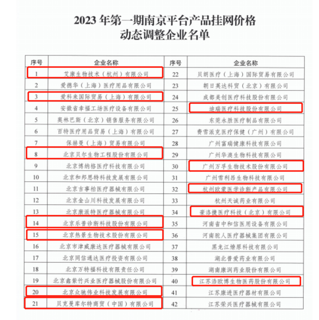 2023年6月8日,南京市药采保障中心发布《关于开展南京平台产品挂网价格动态调整的通知》,对招采结算平台中高于外地挂网价格的产品进行调整。要求相关生产企业于2023年6月9日9:00-6月21日17:00登录结算平台对产品及价格来源进行确认,并将加盖企业公章的价格确认表递交至市药采保障中心,在规定时间内未确认或无意见反馈的,视同已经确认。 通知明确,根据《关于深入推进医用耗材治理改革的实施意见》 (宁医发[2022]22号)要求,“持续执行医用耗材最低价跟踪锁定机制,定期采集全国最低价,与生产企业谈判、确认,动态调整挂网产品价格”,我市将根据搜集到的外地挂网价格,对南京医用耗材 (药品) 招采结算平台中价格高于外地挂网价格的产品,进行价格调整。 目前通告发布了第一期最低价联动企业名单,涉及IVD企业有艾康、爱科来、迪瑞、贝尔、万孚、欧蒙、乐普、豪洛捷、热景、众驰伟业、浩欧博、贝克曼、乐成、国赛、惠安、亚辉龙、迈克、希森美康、新产业、新健康成、莱博、奥普。 通 知 原 文 关于开展南京平台产品挂网价格动态调整的通告 |