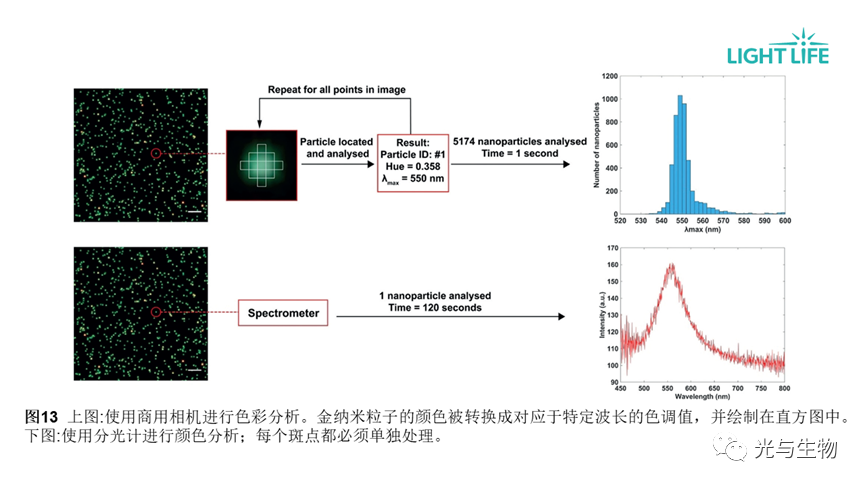 - 智能手机商用相机用于高通量读取等离子体共振(LSPR)光谱(图13)。