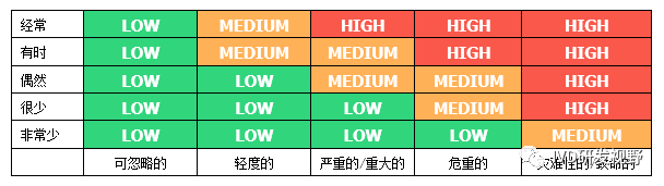 表2 半定量概率层级示例 通用术语 | 概率范围示例 | 经常 | 1 / 100 | 有时 | 1 / 1,000 | 偶然 | 1 / 10,000 | 很少 | 1 / 100,000 | 非常少 | 1 / 1,000,000 |