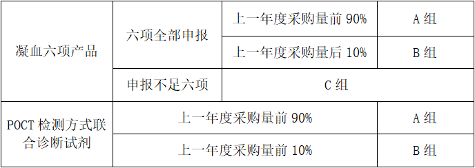 在产品的选择上,需要报量的产品符合4个原则:临床用量大、使用成熟、采购金额高、市场应用充分。从7月21日安徽医保局访谈来看,最终版本基本确定,相传为性激素、传染病、糖代谢(C肽和胰岛素),都是不小的panel。由于安徽医保局有两次集采经验,虽然第一次是在纪委强力推动下进行的,但第二次的凝血集采,在规则设计上,安徽医保局也是煞费苦心。由于化学发光和凝血类产品比较类似,我们可以重温一下安徽凝血产品的规则。作为联合检测项目,本次勾选的项目是否齐全将会影响到带量采购项目的分组。也就是说,对于凝血六项来讲,六项项目全的才能进入A/B组,项目不全,只能进入C组。