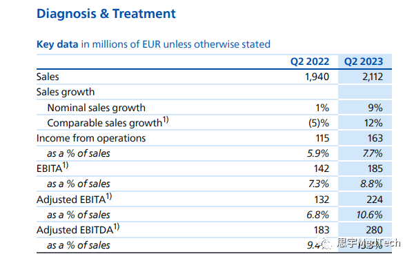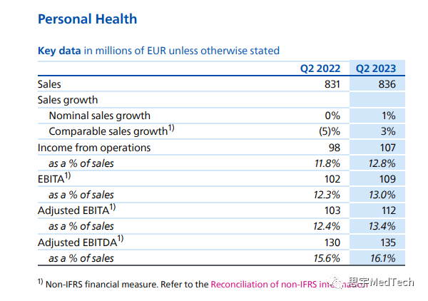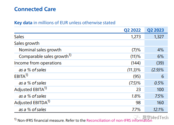 除了收购飞利浦的股份外,最近,在医疗保健领域,EXOR还对Institut Mérieux(专注传染病和癌症的梅里埃研究所)和LifeNet Healthcare(意大利医院和门诊管理公司)进行了重要投资;而在科技领域,EXOR已成为VIA Transportation Inc.(公共交通解决方案提供商)的最大单一股东。 EXOR首席执行官John Elkann评论道:“飞利浦近年来采取的变革之路将我们致力于的两个领域——医疗保健和技术——结合在了一起。公司的讨论证实,我们对公司的长期、支持性的做法,与飞利浦在菲克·西贝斯马(Feike Sijbesma)主席和罗伊·雅各布斯(Roy jacobs)领导的执行团队的雄心勃勃的计划之间存在强有力的一致性。” #回顾飞利浦二季度财报 在所有部门和地区的增长推动下,飞利浦集团销售额增长至44.7亿欧元,可比销售额增长9%。集团整体层面来看,飞利浦的订单量与去年第二季度相比增长了3%。 医疗业务细分来看:其中,诊断和治疗业务(Diagnosis & Treatment)总营收21.12亿欧元,可比销售额在本季度增长了12%,润率提高至10.6%。其中,超声和图像引导治疗(Ultrasound and Image-Guided Therapy)的销售额增长了两位数,诊断成像的销售额增长了个位数。 本季度,互联医疗(Connected Care)的总营收13.27亿欧元,可比销售额增长了6%,利润率增加到7.5%,主要得益于中国市场两位数增长的推动,其中监测(Monitoring)业务实现了两位数的增长,部分抵消了睡眠和呼吸护理业务(Sleep & Respiratory Care)的下滑。由于在2020年至2022年期间的强劲增长之后,需求逐渐趋于正常化,可比订单摄入量出现了高个位数的下降,但订单量仍显着高于疫情前。调整后的EBITA利润率增长至7.5%,主要受生产力措施和监控业务盈利能力提高的推动。 个人保健业务(Personal Health)恢复增长,总营收8.36亿欧元,可比销售额增长3%,主要受中国市场个人护理业务中位数增长的推动。调整后的EBITA利润率增加到13.4%。 基于飞利浦上半年业绩的改善、稳定的订单量以及正在采取的架构改善行动,该公司目前预计2023年全年将实现中等个位数的销售增长,调整后的EBITA利润率将达到高个位数范围的上限,但仍存在不确定性。 #飞利浦的近期亮点和创新 在财报中,飞利浦还汇总了集团层面的创新与亮点: