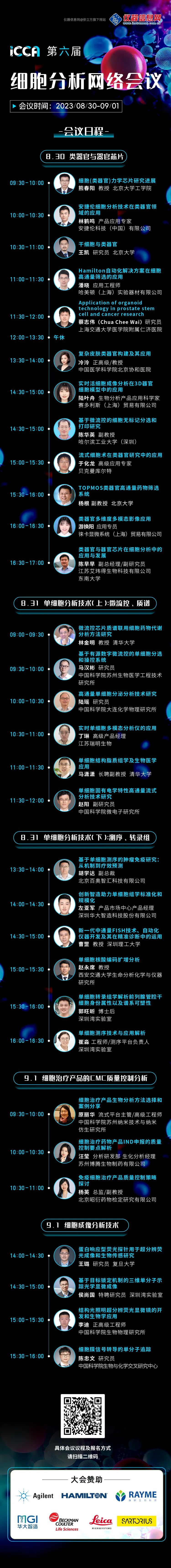 细胞是生物体和生命活动的基本单位,细胞分析对于细胞结构和功能的研究、生命活动规律和本质的探索、疾病的诊断与治疗、药物的筛选与设计等都具有十分重要的意义。近年来随着分析技术的不断提高,人们越来越意识到细胞异质性的重要性,单细胞分析、微流控技术、细胞成像分析、流式细胞技术等创新的细胞分析技术发展迅速,使得对细胞进行精确操控、识别、分离和分析成为了可能。 为加强创新细胞分析技术与方法的交流,把最新的细胞分析技术与方法推介给广大生物医药领域用户,仪器信息网将于2023年08月30日-09月01日举办第六届细胞分析网络会议(iConference on Cell Analysis,iCCA 2023)。 会议亮点 PICK你感兴趣的关键词高效参会 会议邀请类器官、微流控、干细胞、单细胞测序、原位测序、流式、生物制品、生物成像技术等各领域资深专家,围绕前沿创新的细胞分析技术在科研中的应用与解决方案多角度多维度分享。 扫码报名 分会场设置 大会日程 | 嘉宾阵容 扫码报名 了解更多精彩 更多精彩直播会议等你来,添加上方小助手二维码参会! 9月5日:肿瘤微环境及肿瘤免疫和代谢研究新技术与新方法 9月19-21日:第六届 抗体药物研发与质量分析网络会议 10月10-11日:合成生物学研究进展 网络研讨会 10月17-19日:第五届流式细胞仪网络会议 iCCA 2023 交流群 温馨提示: 1) 报名后,直播前一天助教会统一审核,审核通过后,会发送参会链接给报名手机号。填写不完整或填写内容敷衍将不予审核。 2) 通过审核后,会议当天您将收到短信提醒。点击短信链接,输入报名手机号,即可参会。 会议内容及报告赞助: 仪器信息网 刘老师:13683372576, liuld@instrument.com.cn 仪器信息网 王老师:13653116325, wangqy@instrument.com.cn |