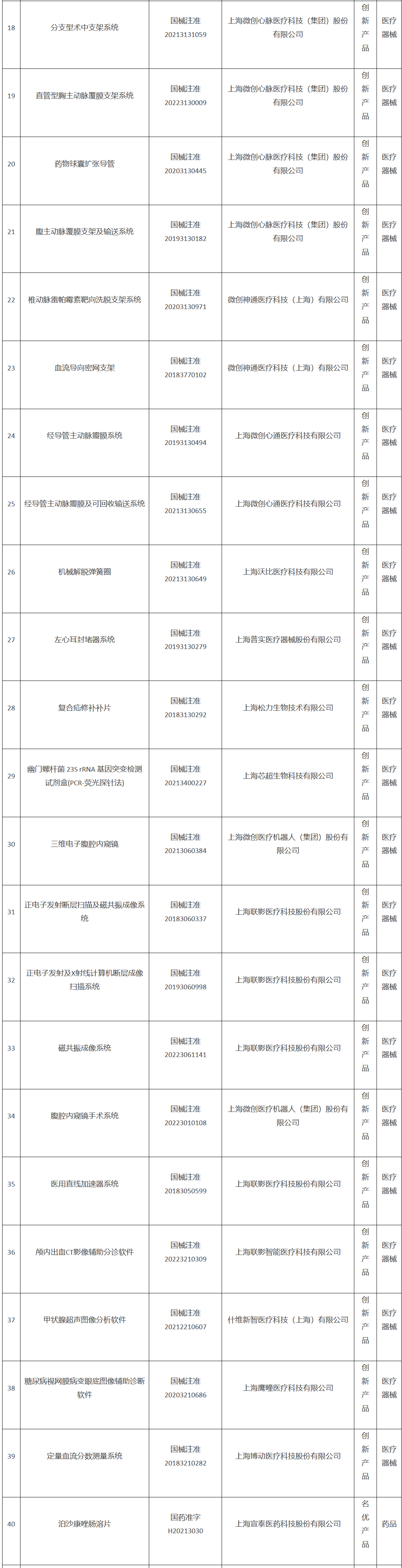 《2023年度上海市第一批创新产品推荐目录》(器械部分)