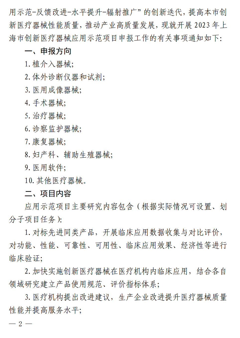 根据《通知》,为加快生物医药创新产品应用推广,支持创新医疗器械在医疗机构开展应用示范,形成“应用示范-反馈改进-水平提升-辐射推广”的创新迭代,提高上海市创新医疗器械性能质量,推动产业高质量发展,现就开展2023年上海市创新医疗器械应用示范项目申报工作