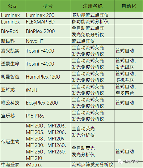 表3:NMPA注册微球流式细胞仪型号与自动化