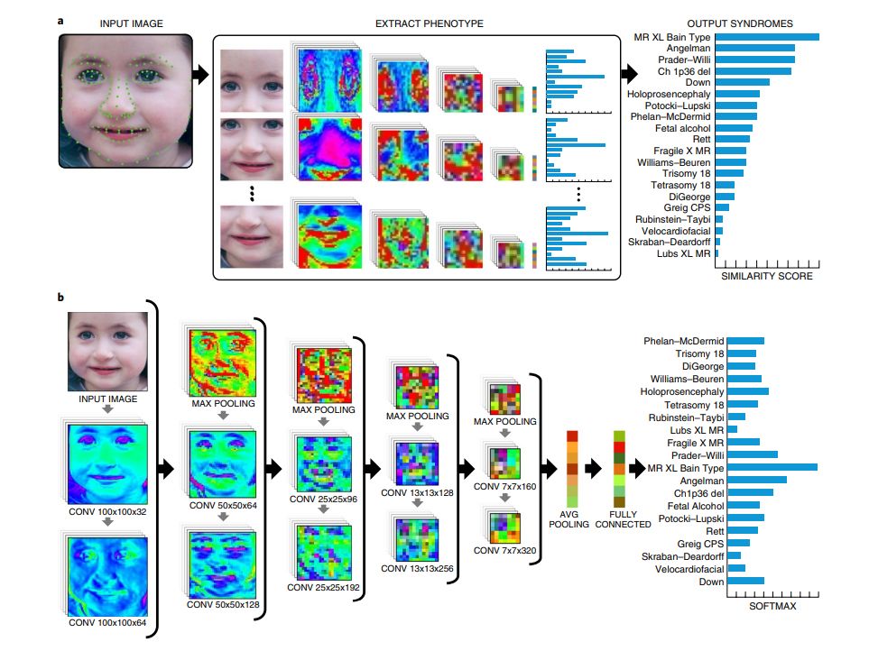 DeepGestalt是一种利用计算机视觉和深度学习算法的人脸分析框架,可以根据无约束的2D图像,量化与数百种遗传综合征的相似度,从而帮助医生快速准确地诊断罕见病。