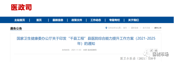 据国家卫生健康委消息,1233家县医院成为首批“千县工程”示范单位,800多个县(市、区)试点已成功建设紧密型县域医共体