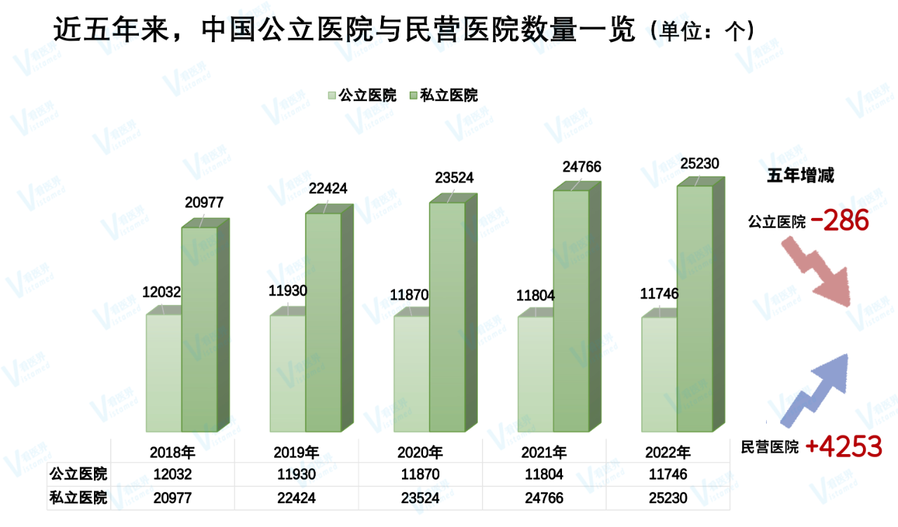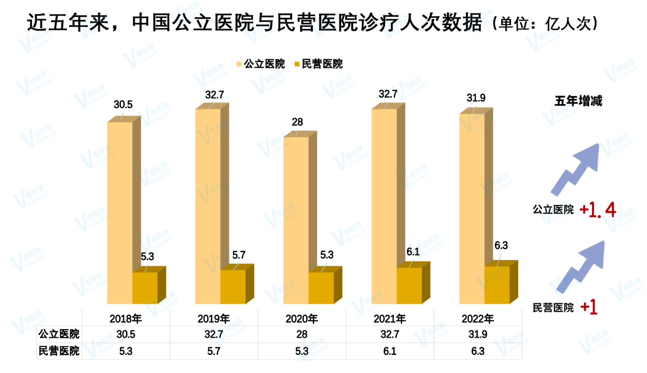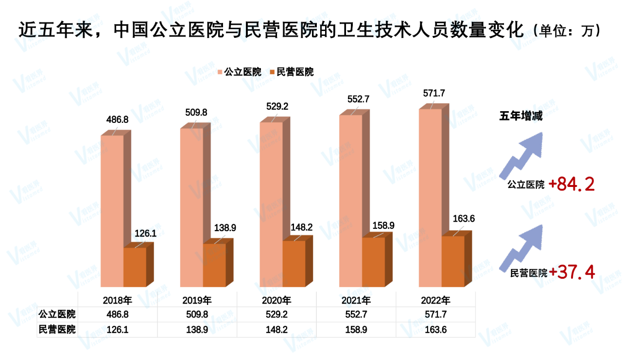近日,2022年我国卫生健康事业发展统计公报公布,让行业人士得以一窥2022年卫生发展情况。那么,通过近5年统计年鉴数据,还可以看出中国医疗有哪些变化呢? 10月12日,国家卫生健康委员会规划发展与信息化司公布了2022年我国卫生健康事业发展统计公报,也让行业人士得以一窥2022年卫生发展情况,目前公布的数据及项目类别没有每年的统计年鉴精细,但看医界梳理整理了2022年统计公报及历年统计年鉴数据,提炼出近五年的医疗卫生事业一些方面的数据,供行业及产业人士参考。 1.医院数量(单位:个) 民营医院个数继续增长,公立医院个数继续减少 2.床位数量(单位:万张) 2018年,公立医院床位占73.7%,民营医院床位占26.3%。 2022年,公立医院床位占70.0%,民营医院床位占30.0%。 3.诊疗量(单位:亿人次) 民营医院略有提升,但占比依旧低迷 2018年公立医院诊疗人次30.5亿人次(占医院总数的85.2%),民营医院5.3亿人次(占医院总数的14.8%); 2022年,公立医院诊疗人次31.9亿(占医院总诊疗人次的83.4%),民营医院诊疗人次6.3亿(占医院总诊疗人次的16.6%)。 4.三甲医院数量(单位:个) 5.三级医院数量(单位:个) 6.卫生技术人员数量(含执业医师及执业(助理)医师、注册护士、药师、技师等,单位:万) 7.卫生总费用占GDP的比重 8.医院病床使用率 |