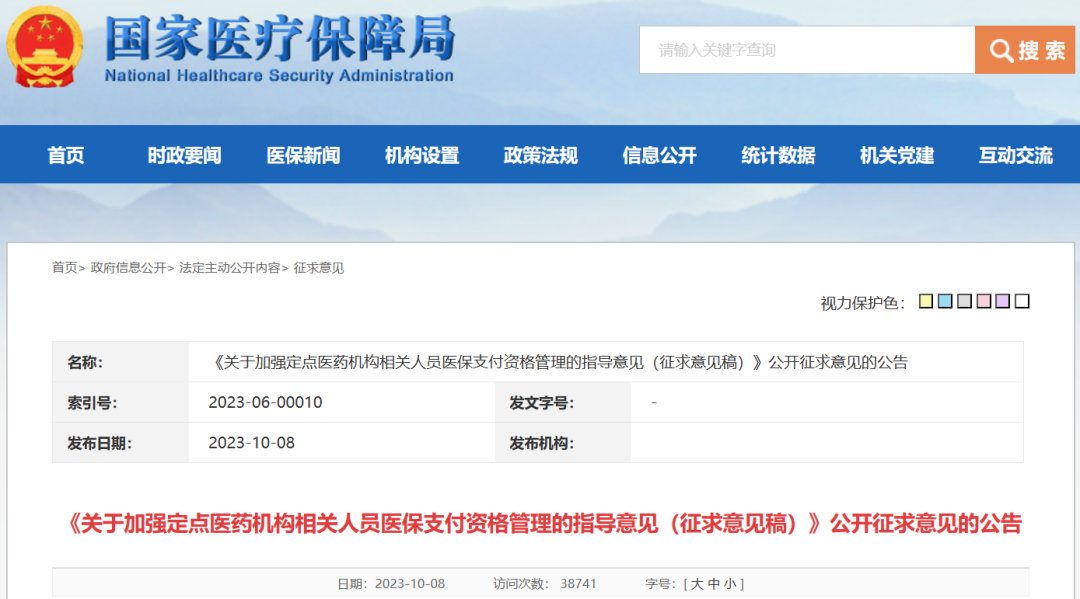 10月8日下午,国家医保局发布《关于加强定点医药机构相关人员医保支付资格管理的指导意见(征求意见稿)》相关公告,向社会公开征求意见。