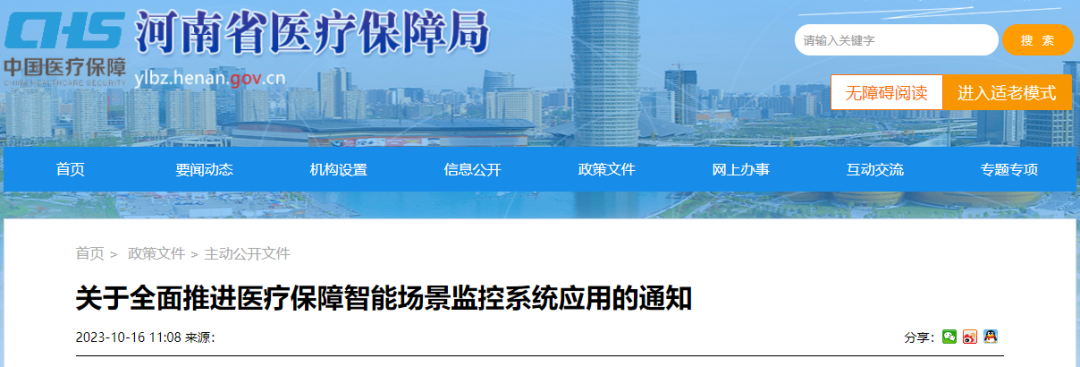 10月16日,河南省医保局发布了《关于全面推进医疗保障智能场景监控系统应用的通知》。