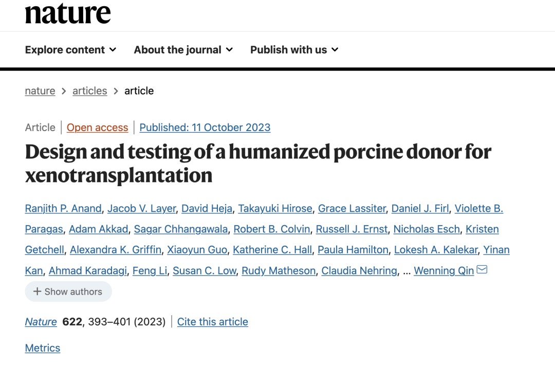 异种移植有机会解决全球器官短缺问题,但在临床应用之前,必须将人工改造的猪供体器官在非人类灵长类动物 (NHP) 模型中进行测试以确保其安全性和有效性。2023年10月11日Nature杂志上合作发表了一篇题为Design and testing of a humanized porcine donor for xenotransplantation 的文章,来自eGenesis的Wenning Qin和Michele E. Youd团队对尤卡坦半岛小型猪供体进行69次基因编辑,实现3种糖类抗原的消除、猪内源性逆转录病毒失活和7个人类转基因过表达,将供体猪肾移植到NHP体内并与临床相关免疫抑制方案相结合,可支持NHP长期存活达758天。这一研究成果离基因工程猪肾脏移植的临床试验更近了一步。