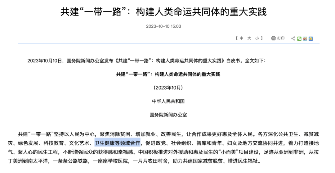 “一个理念,激活了两千多年的文明记忆;一个倡议,激发了150多个国家实现梦想的热情”。2023年10月17日至18日,第三届“一带一路”国际合作高峰论坛在北京举行。2023年10月10日,国务院新闻办公室发布《共建“一带一路”:构建人类命运共同体的重大实践》白皮书。“一带一路”倡议十周年,本篇让作为IVD企业的我们一起抓住其中的发展机遇,共建下一个十年。