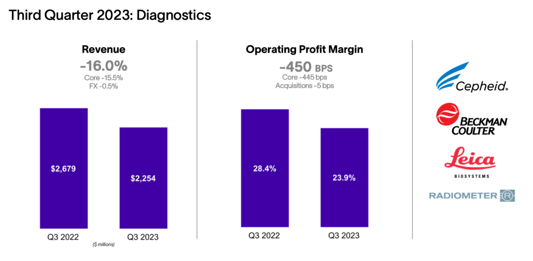 前三季度,丹纳赫诊断业务共收入68.61亿美元,同比-13%。