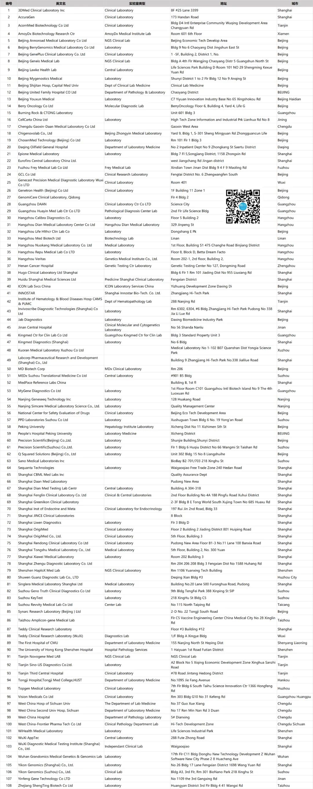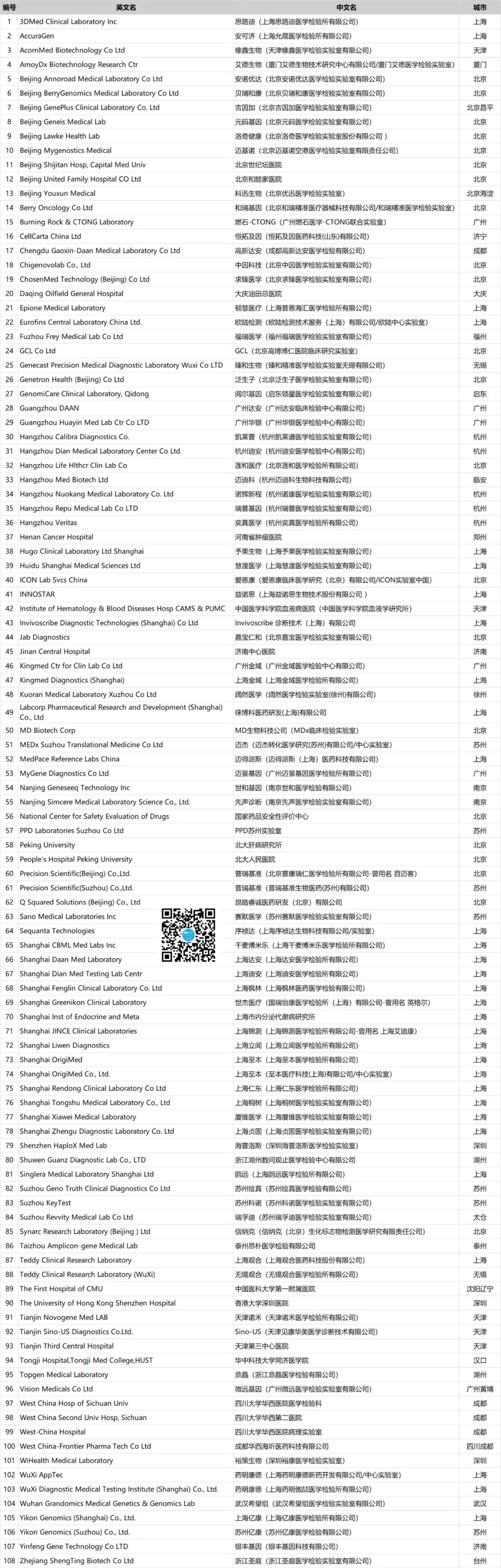 *需要注意的是:CAP认证的实验室可能是国内第三方医学实验室(有医疗机构执业许可证),也可能是自建中心实验室(无医疗机构执业许可证),且大多数实验室地址与母公司地址一致,所以中文版清单信息仅供参考。