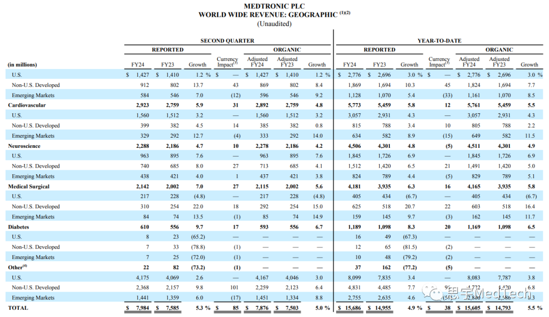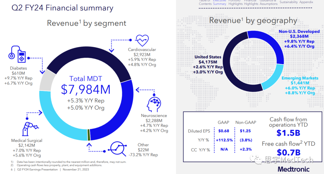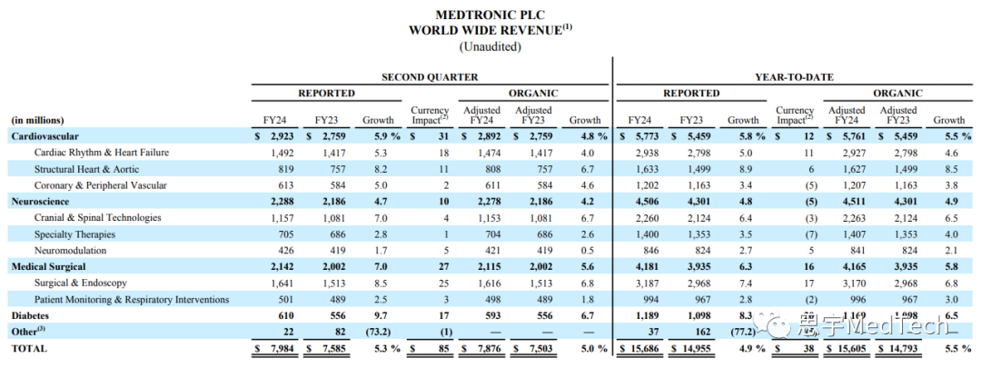 2023年11月21日,美敦力(纽约证券交易所代码:MDT)公布了截至2023年10月27日的2024财年(FY24)第二季度的财务业绩。